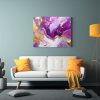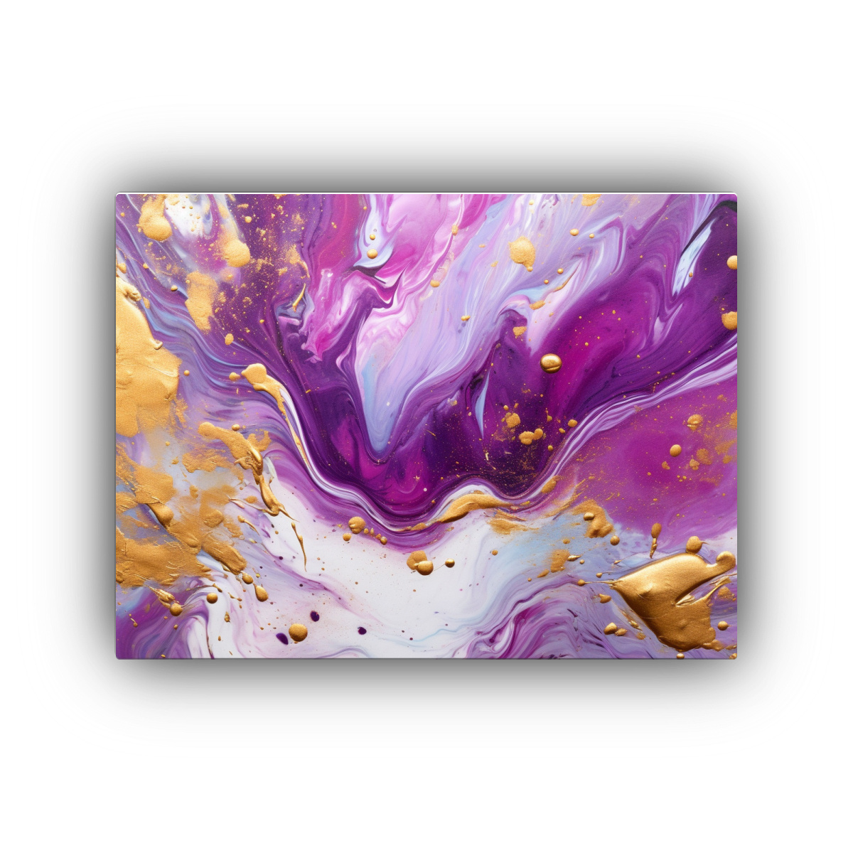 Agrega un toque de elegancia y sofisticación a tus espacios con este cuadro exclusivo Es perfecto para decorar salas, dormitorios o espacios de trabajo Sus tonos dorados, púrpuras y magentas lo hacen ideal para combinar con muebles en tonos neutros o grises