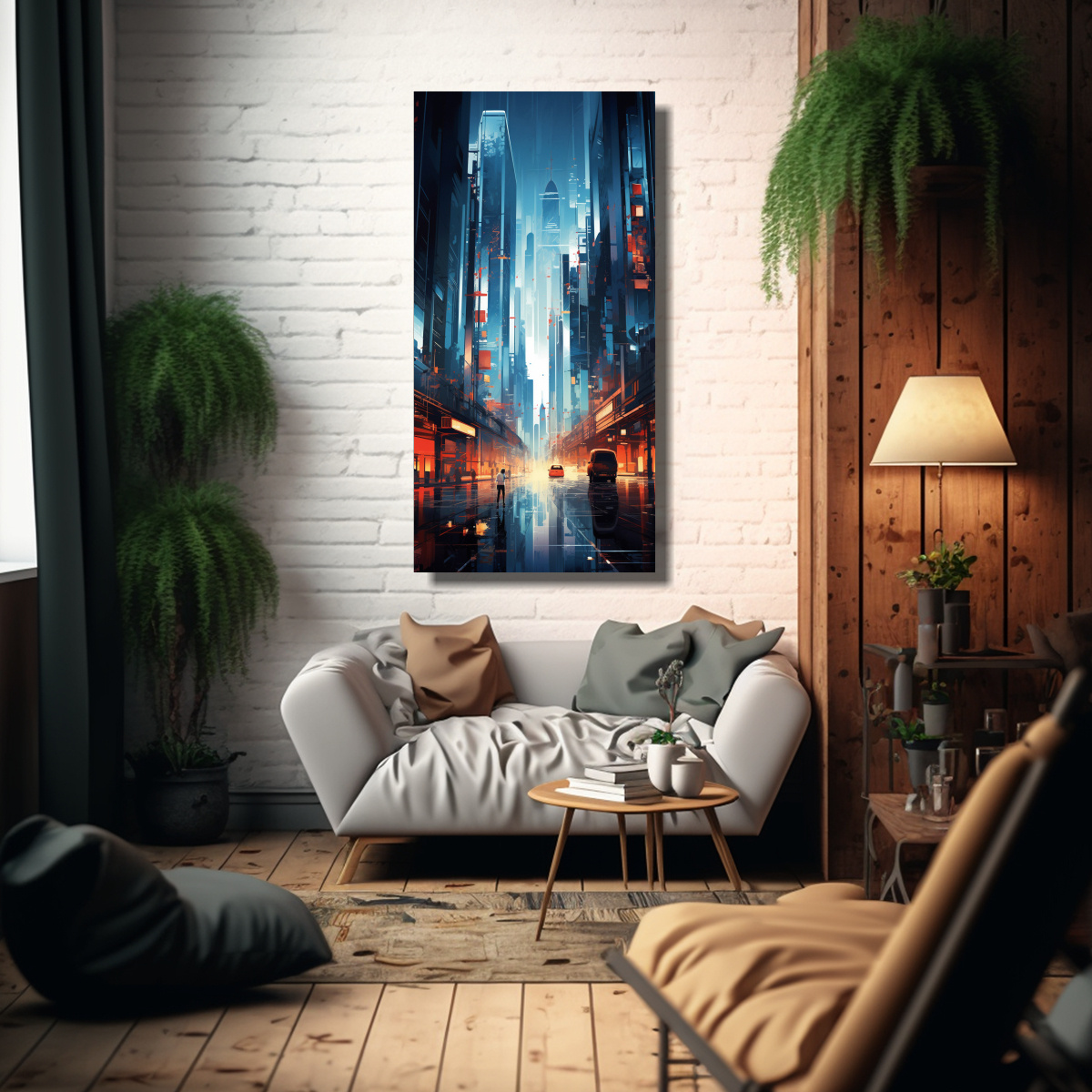 Este cuadro futurista animado se vería impresionante en la sala de estar o en el estudio, combinándolo con muebles minimalistas y accesorios metálicos También puedes colocarlo en la oficina para agregar un toque moderno y creativo a tu espacio de trabajo ¡Deja volar tu imaginación y disfruta de la energía vibrante de esta representación abstracta de una ciudad futurista animada en tu decoración!