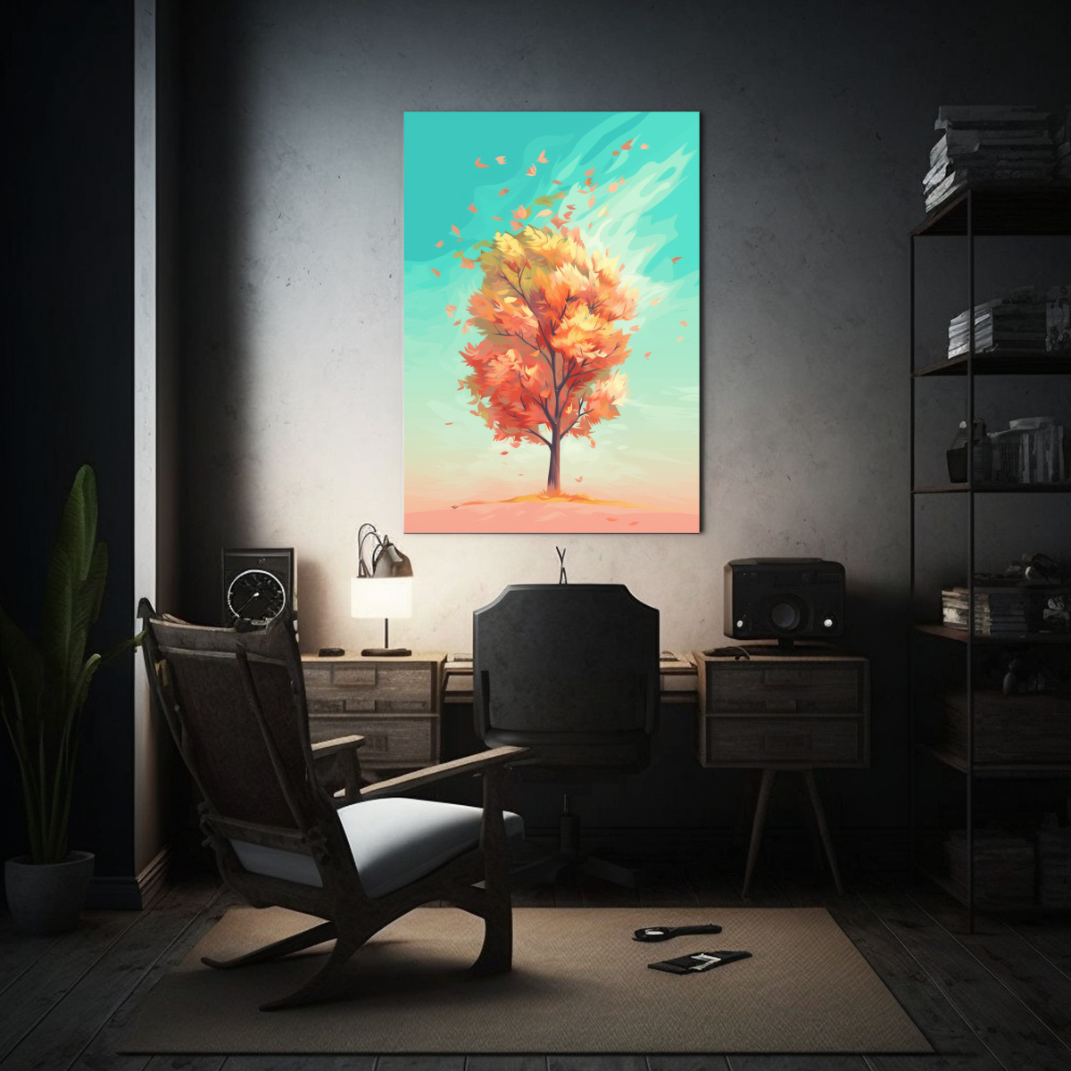 Este cuadro sería perfecto para decorar una sala de estar con temática natural, puedes colocarlo sobre un sofá de color blanco o beige para resaltar los colores pastel del cuadro También puedes combinarlo con cojines y cortinas en tonos turquesa y coral para crear un ambiente acogedor y fresco