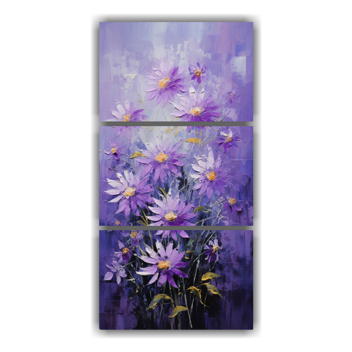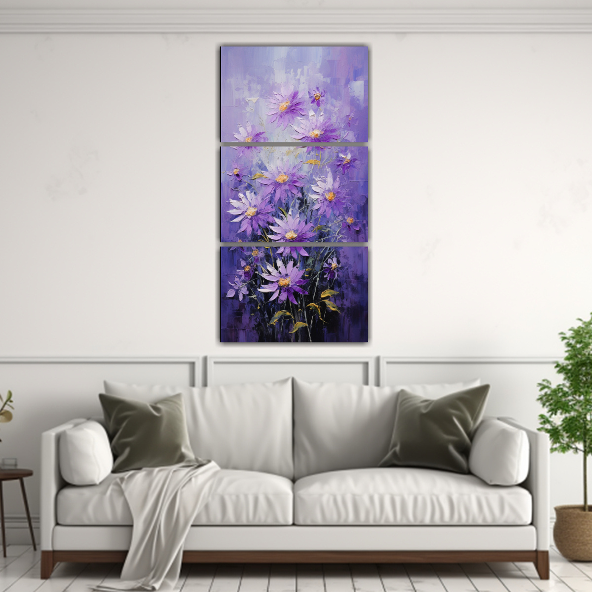 Coloca este cuadro dinámico de girasoles púrpuras en lienzo en tu sala de estar para aportar un toque moderno y vibrante Combínalo con muebles blancos y cojines en tonos neutros para resaltar su belleza