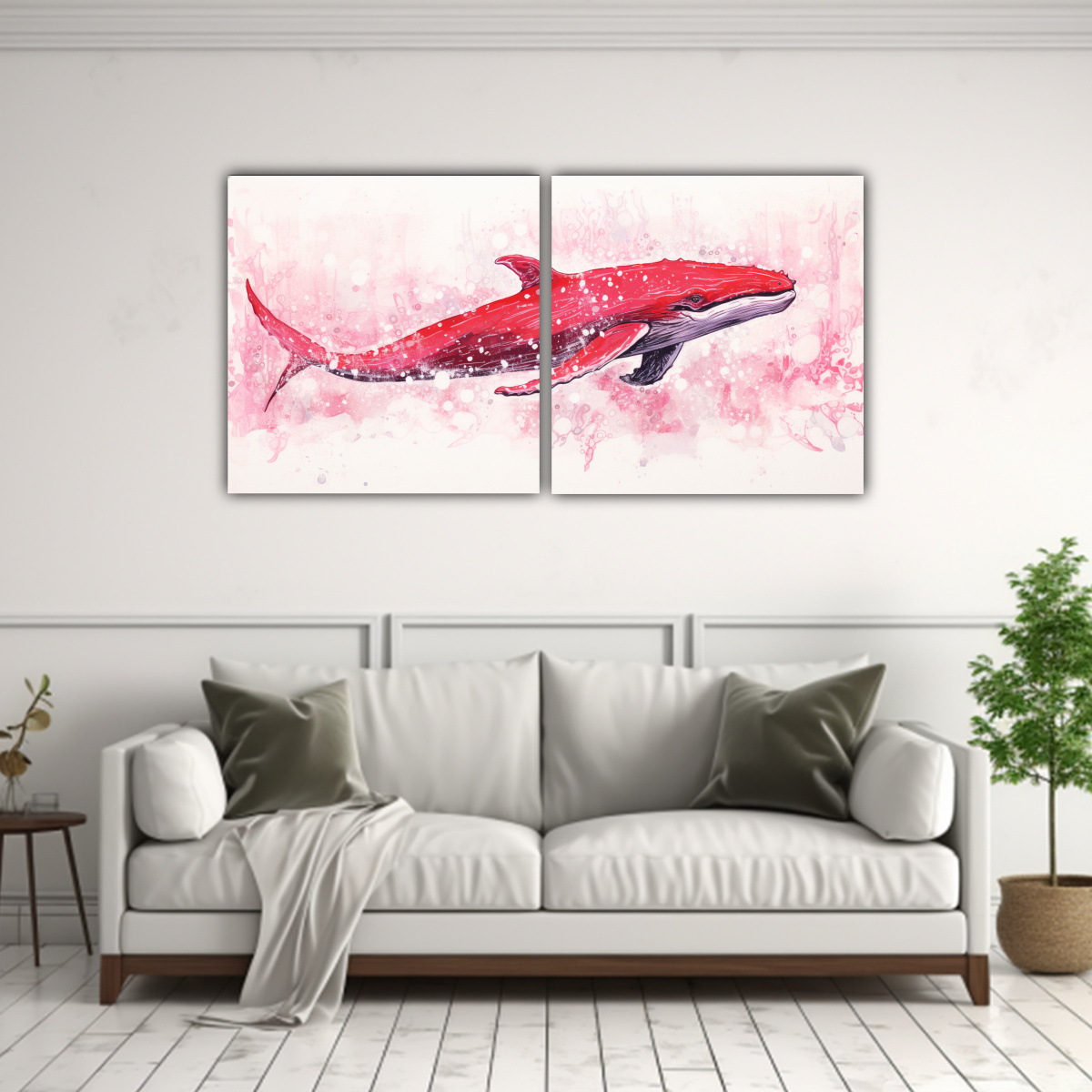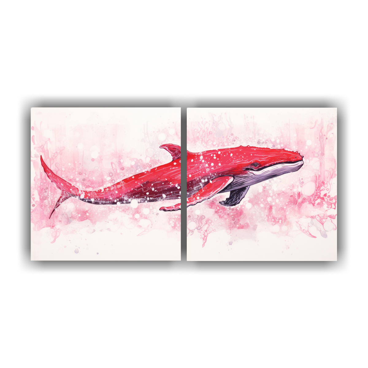 Cuadro Díptico Movimiento Textura Ballena En Nieve Y Colores Rubí Neo Pop Art