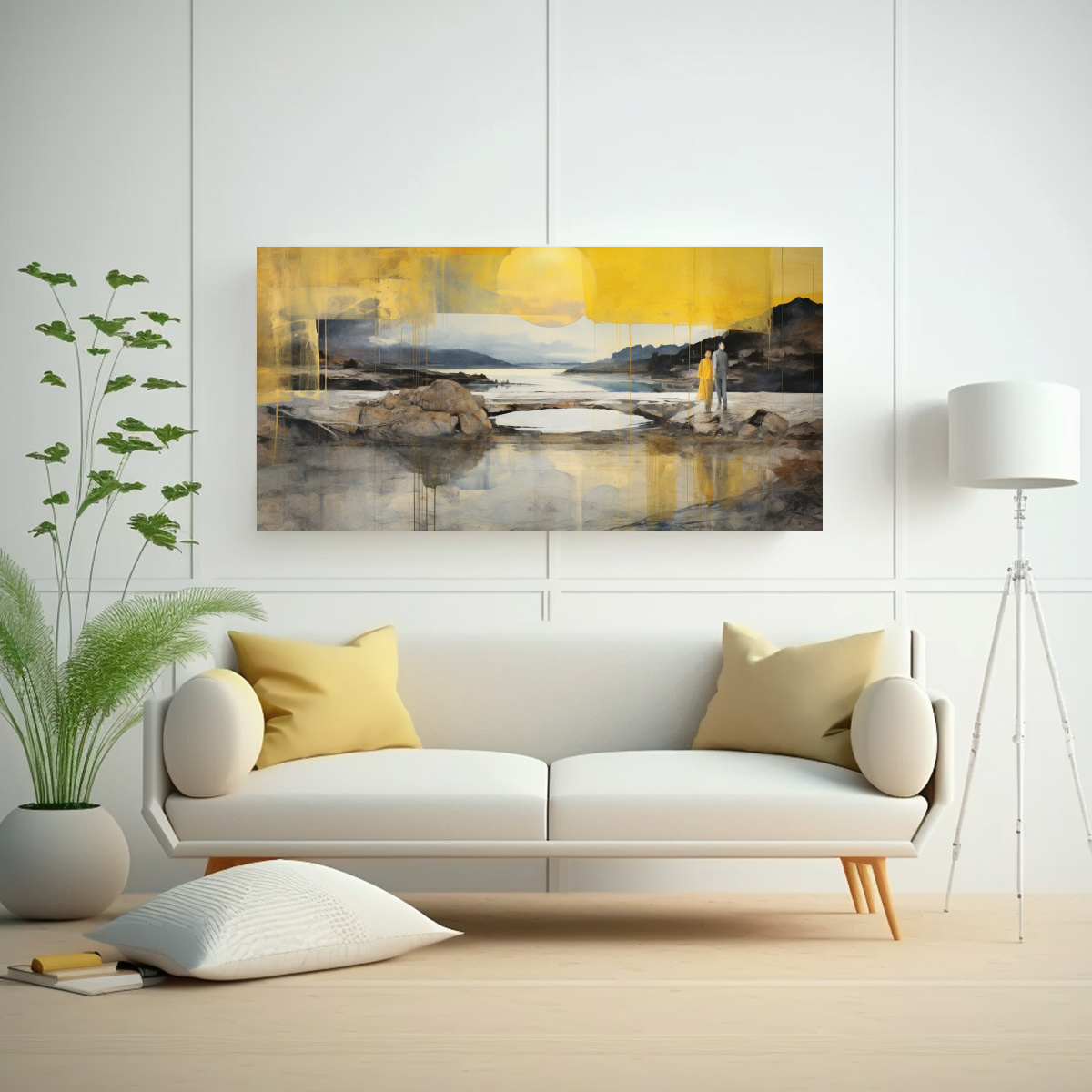 Este cuadro de diseño cultural con acuarela en amarillo, turquesa y plateado quedará espectacular en tu sala de estar Puedes colocarlo sobre un mueble de colores neutros para que resalte aún más y combine con la decoración del espacio También puedes darle un toque moderno y sofisticado a tu dormitorio colocando este cuadro sobre la cabecera de la cama ¡Experimenta con diferentes ubicaciones y crea un ambiente único con este cuadro exclusivo de DecoCuadros!