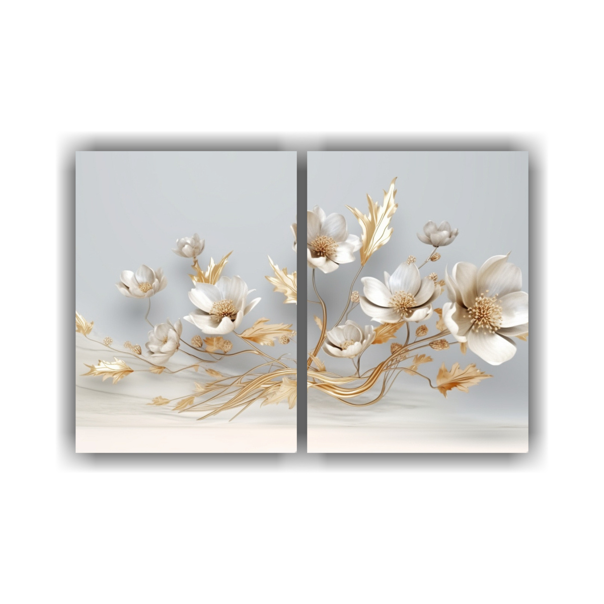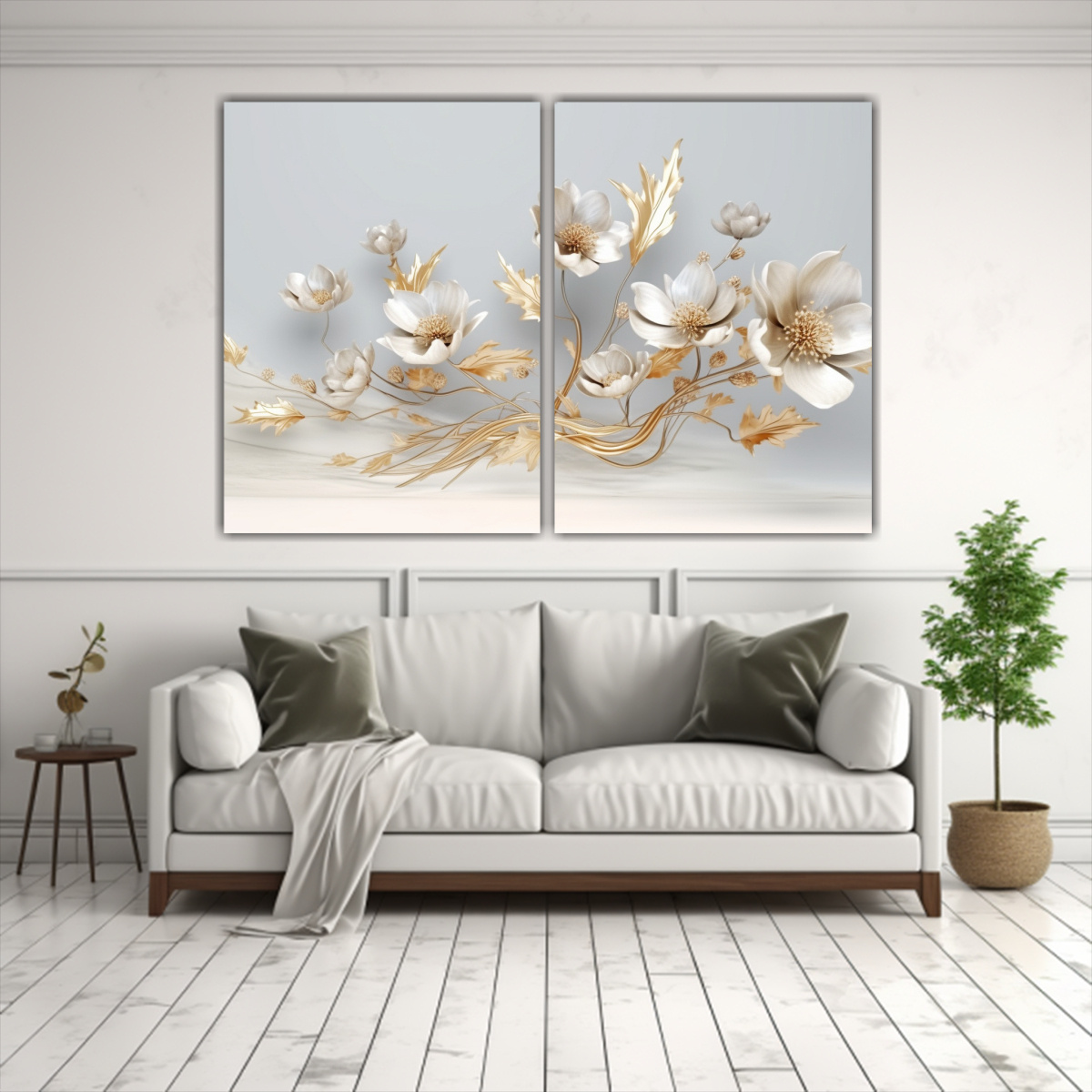 Cuadro Diseño Económico Flores Doradas Elegantes En Fondo Claro