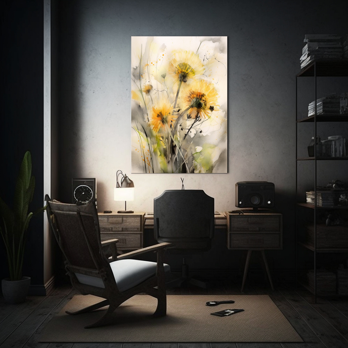 Nuestros cuadros de diseño simetría con dandeliones dramáticos y trazos acuarela teatrales son perfectos para añadir un toque de sofisticación a cualquier espacio El cuadro estilo lienzo de galería crea un aspecto 3D más realzado y moderno, con imágenes y fotos de alta definición impresas con lienzo ecológico El montaje alrededor de un marco de madera de pino de alta calidad y el colgador ya colocado hacen que este cuadro esté listo para montar inmediatamente después de desembalar Recomendamos colocarlo en la sala de estar o en el dormitorio para crear un ambiente elegante y relajante