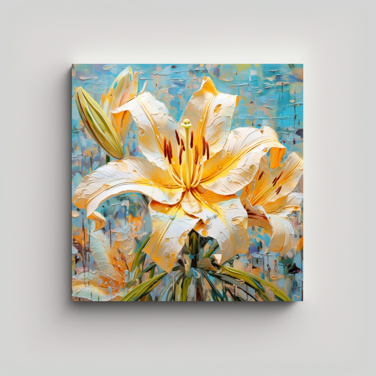 Cuadro Duradero De Lirio Colorido Con Pigmento Amarillo En Lienzo