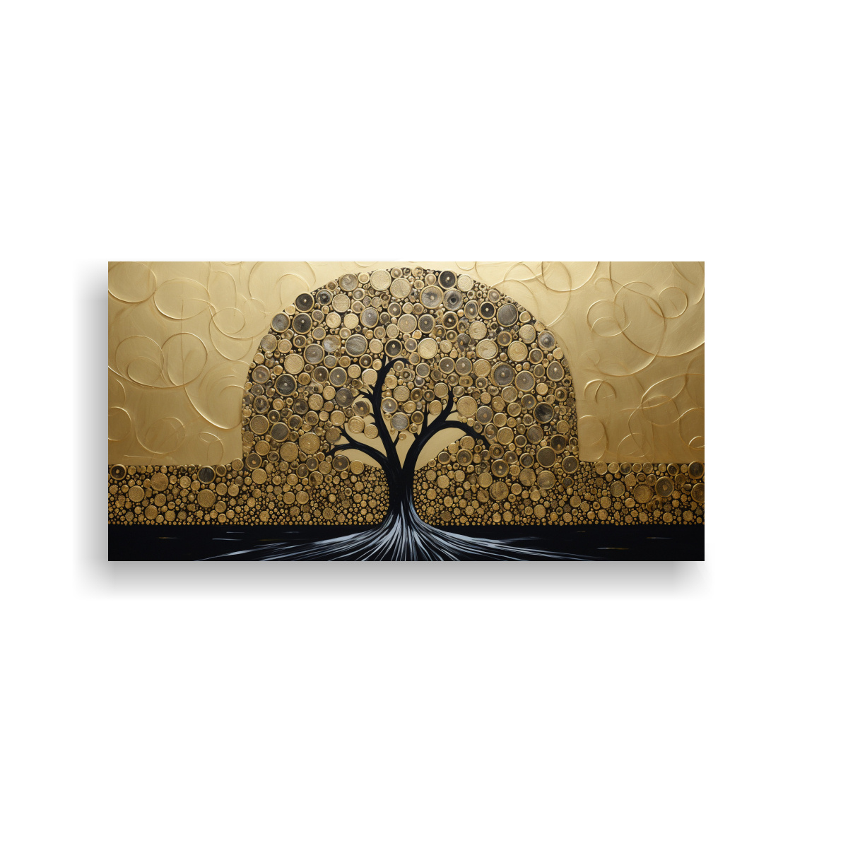 Cuadro Elegante Árbol Negro Y Dorado Para Decoración