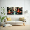 Coloca el Cuadro en Bastidor Abstracto Fantasía Edificios Abstractos en tu sala de estar para crear un ambiente moderno y sofisticado Combínalo con muebles neutros y accesorios en tonos plateados y grises para resaltar su elegancia
