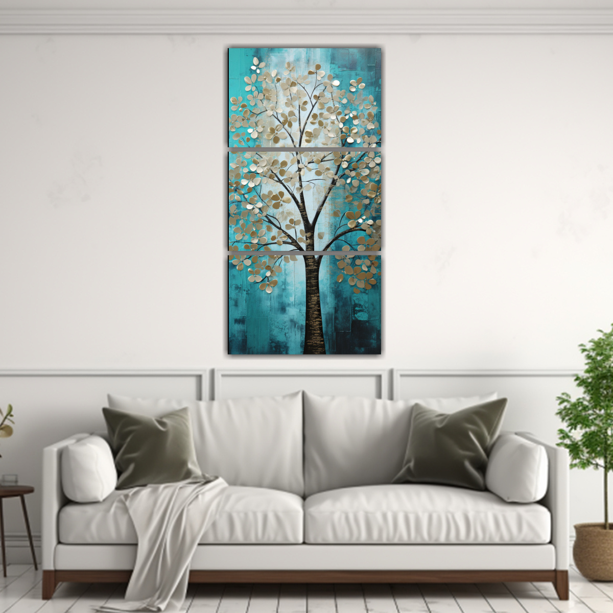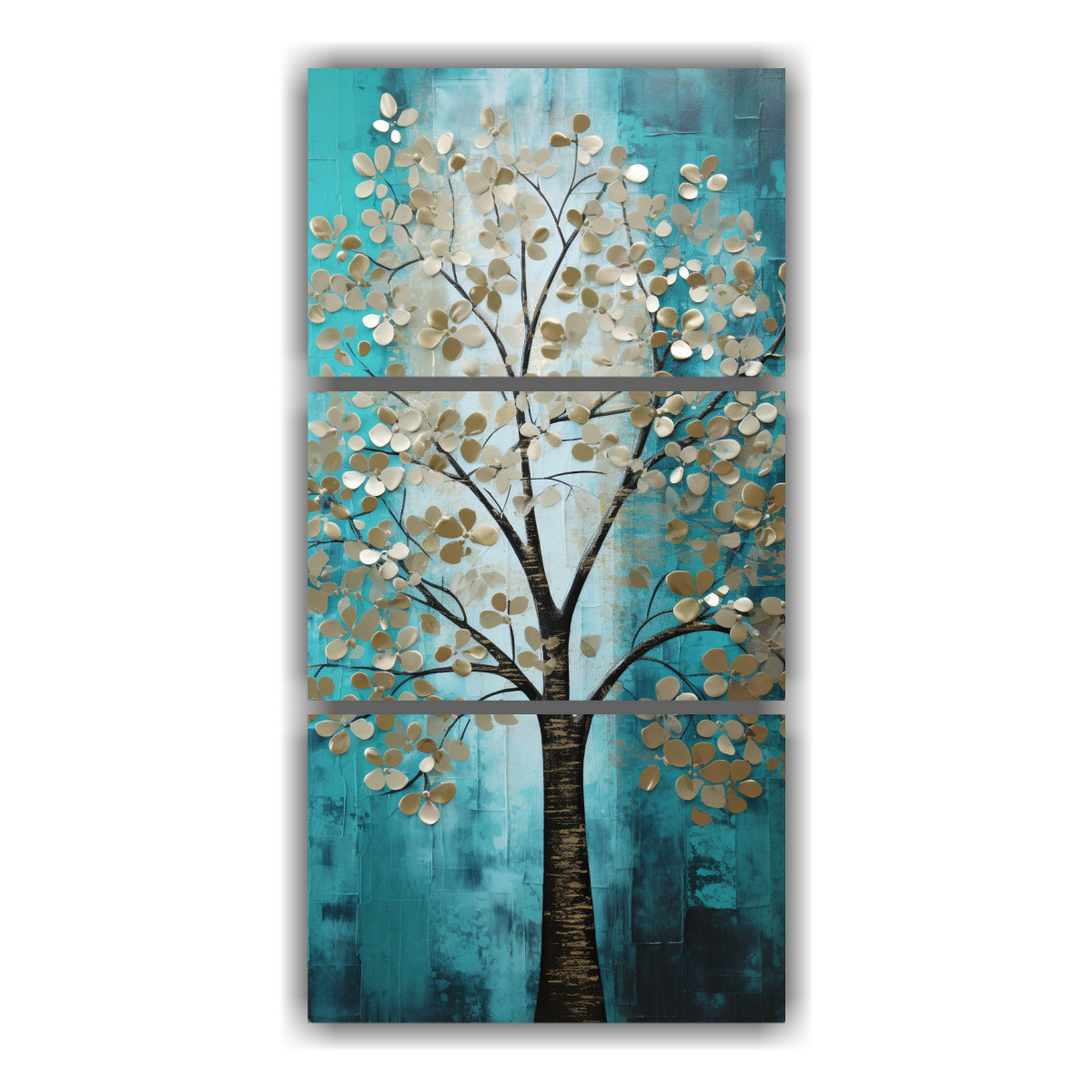 Cuadro En Bastidor: Árbol Turquesa Y Plata Para Decorar Hogar