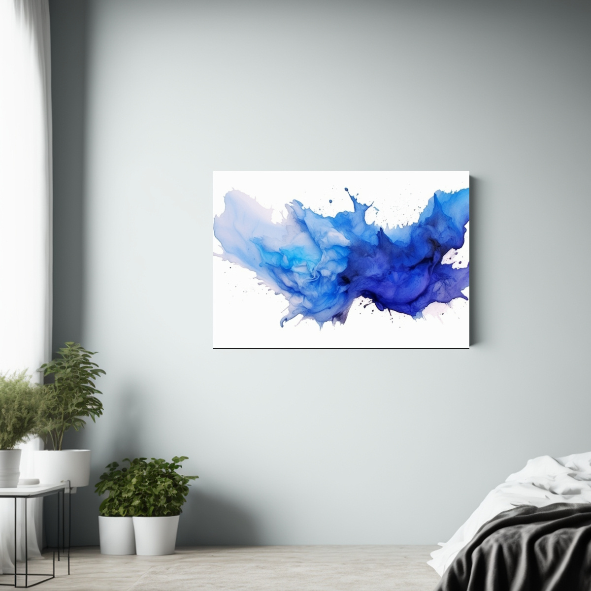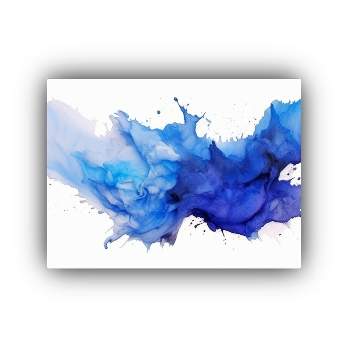 Cuadro En Bastidor Azul Intenso Con Mancha De Acuarela