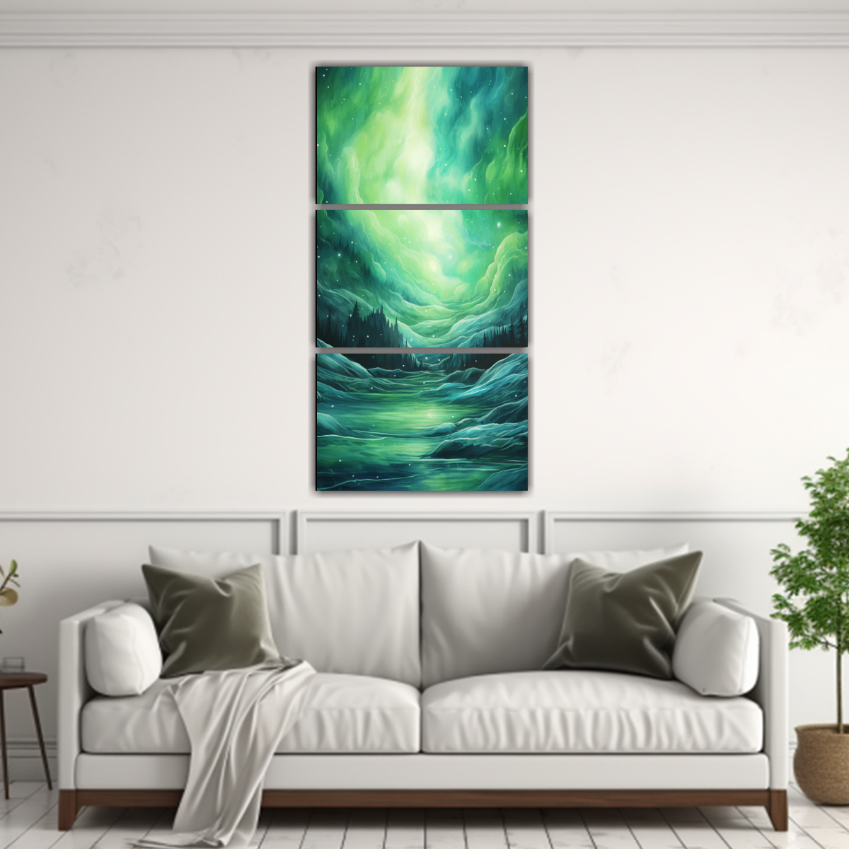 Para resaltar la belleza de este cuadro, te recomendamos colocarlo en un salón amplio con tonos neutros para que los verdes luminosos y azules profundos destaquen Combínalo con muebles de líneas sencillas y detalles en plata para crear un ambiente elegante y sofisticado