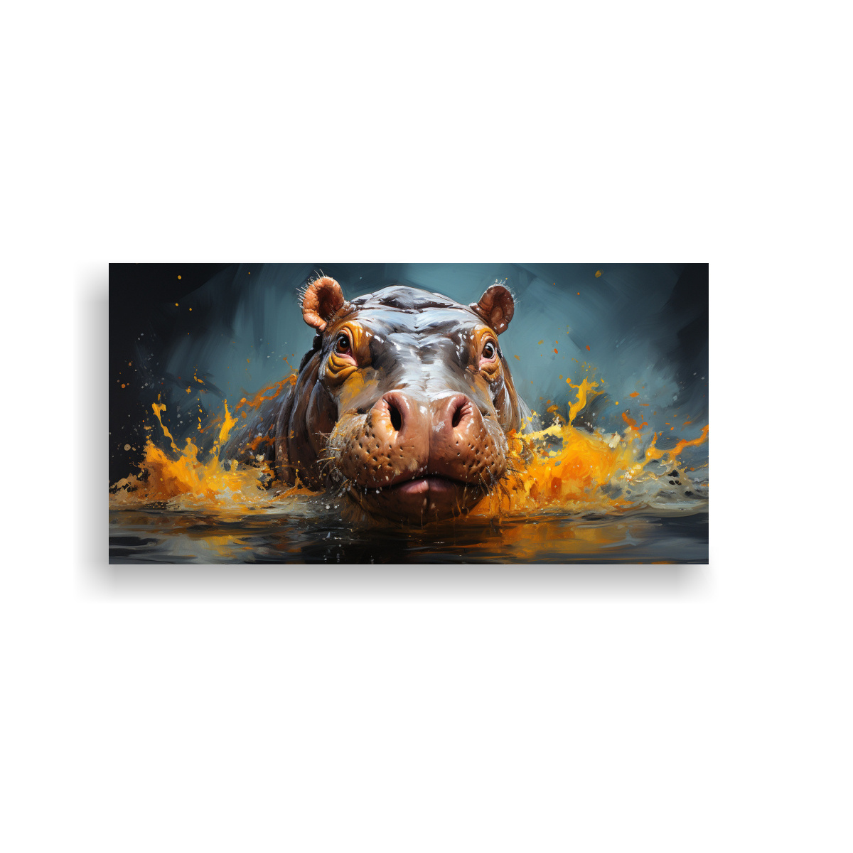 Cuadro En Bastidor Estilo Pintura Al Estilo Óleo Colorida Hipopótamo