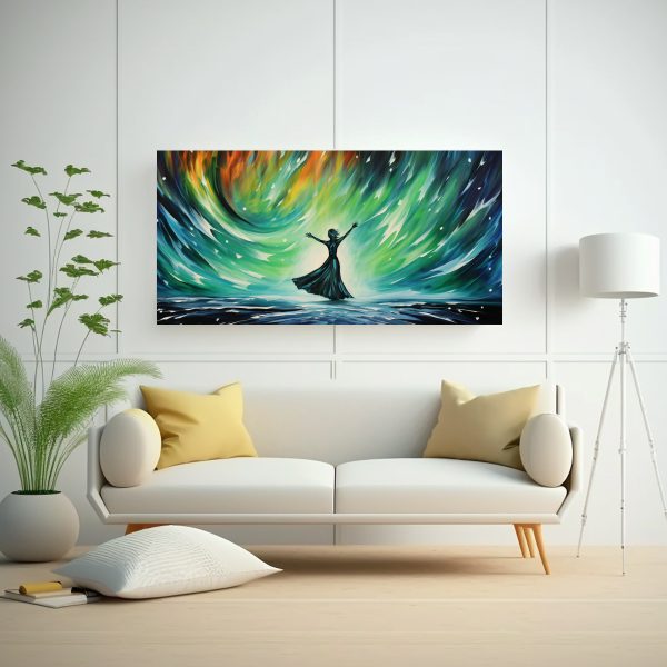 Este Cuadro en Bastidor Fotografía Mural Baile Abstracto de Luces del Norte se verá impresionante en tu sala de estar sobre un sofá de color neutro, creando un contraste elegante También puedes colocarlo en un espacio de estudio para inspirarte con su energía dinámica ¡Atrévete a darle a tu hogar un toque de arte y estilo!