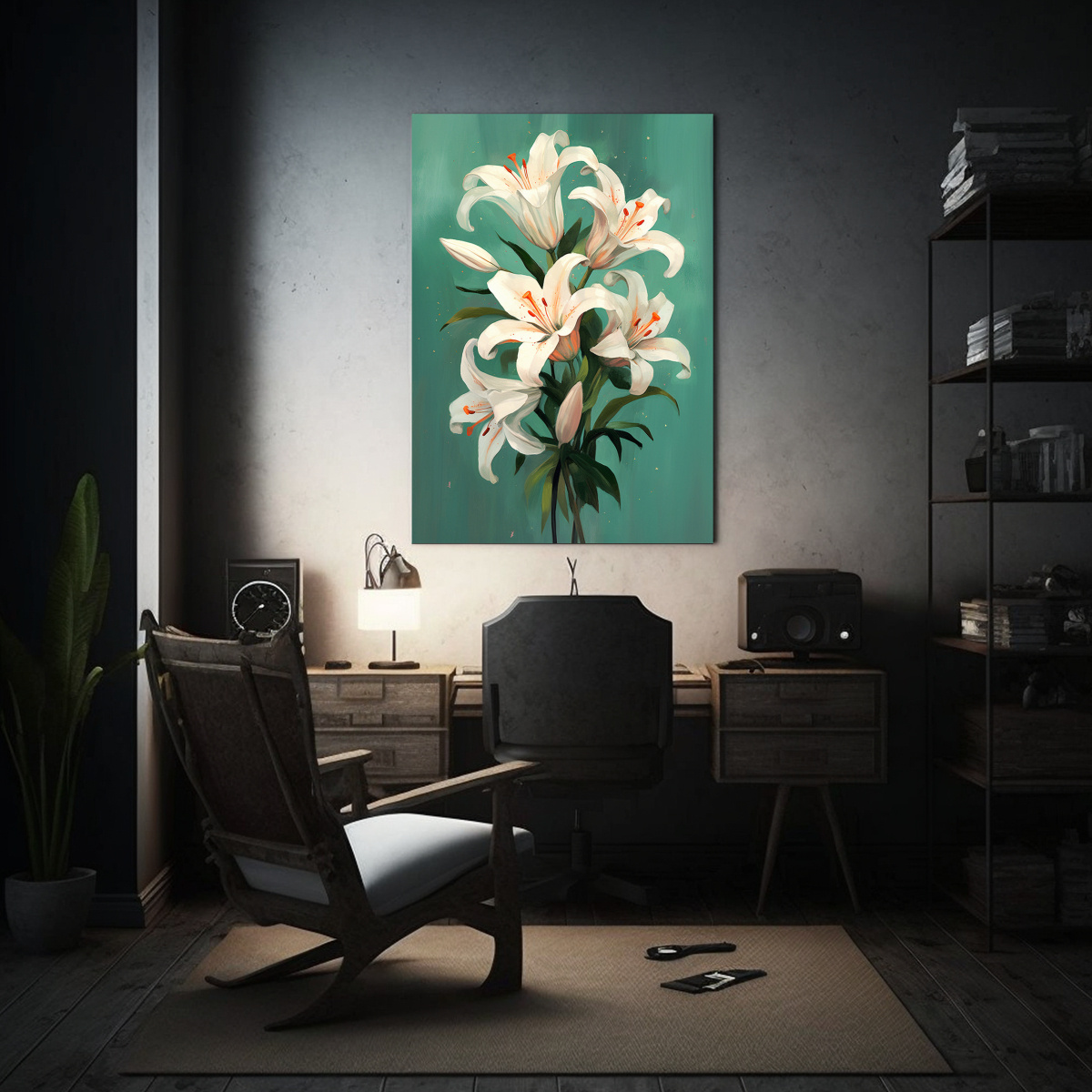 Cuadro En Bastidor Hermoso Detalles Intrincados De Bouquet De Lirios En Acuarela
