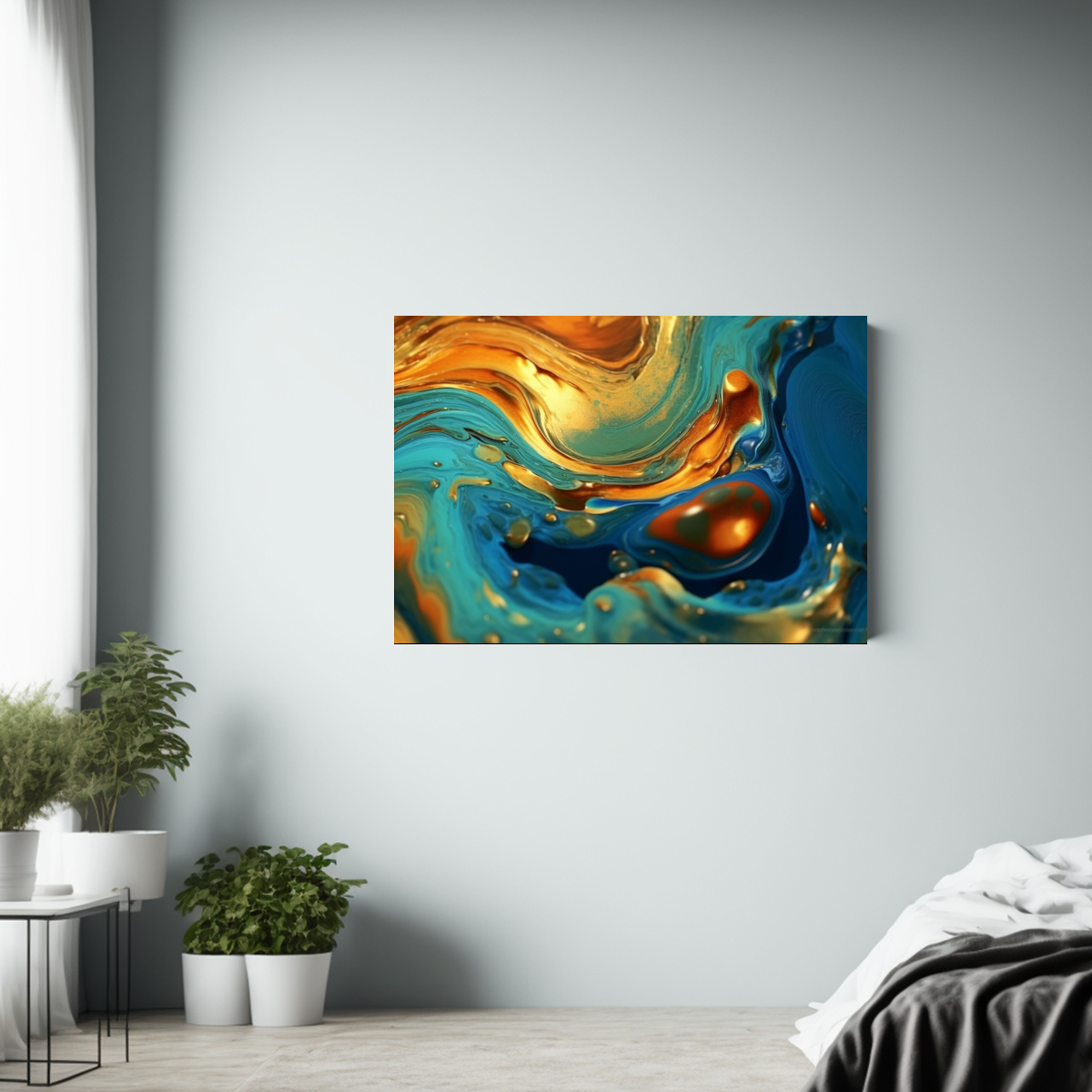 Cuadro En Bastidor Imagen Relieve Oro Líquido Brillante Sobre Turquesa Y Esmeralda