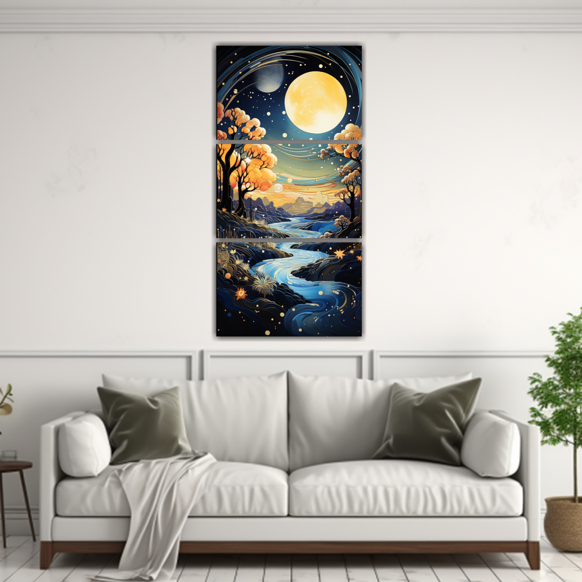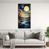 Cuadro En Bastidor Montaña Nocturna Con Luna: Set 3 Telas Modernas