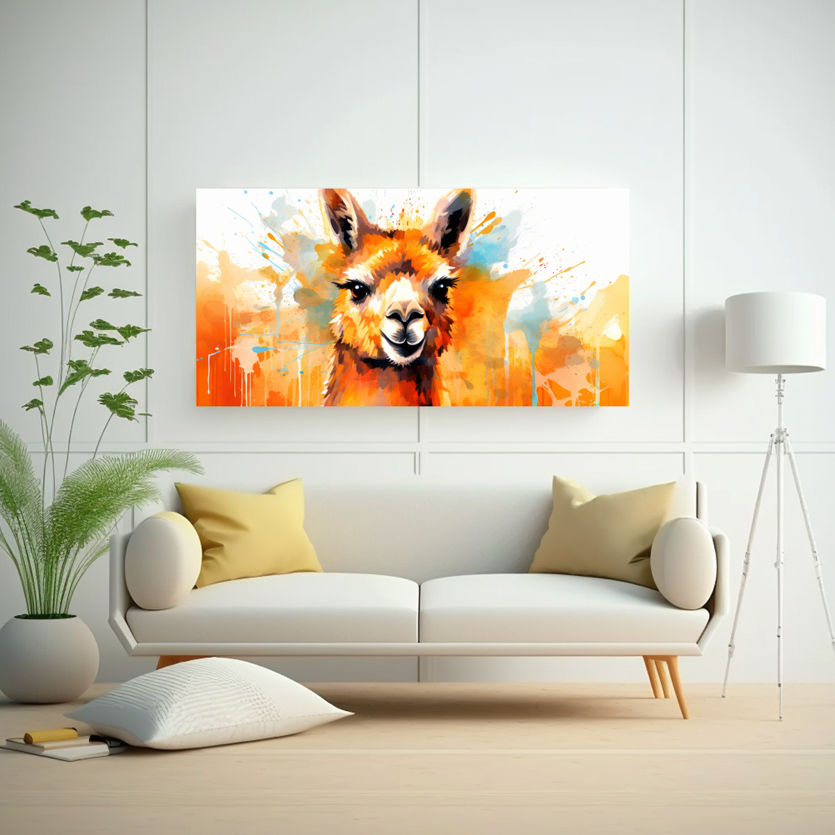 Este Cuadro en Bastidor Movimiento Mágico Alpaca en Colores Naranja se vería espectacular en una pared blanca junto a muebles de tonos neutros para resaltar su vibrante paleta de colores ¡Atrévete a darle vida a tu hogar con esta pieza única!