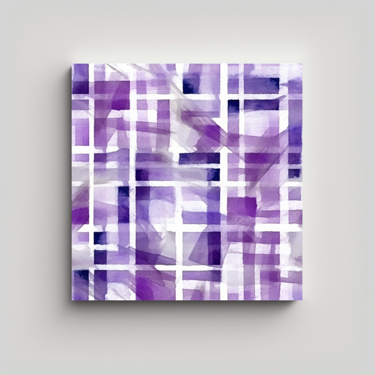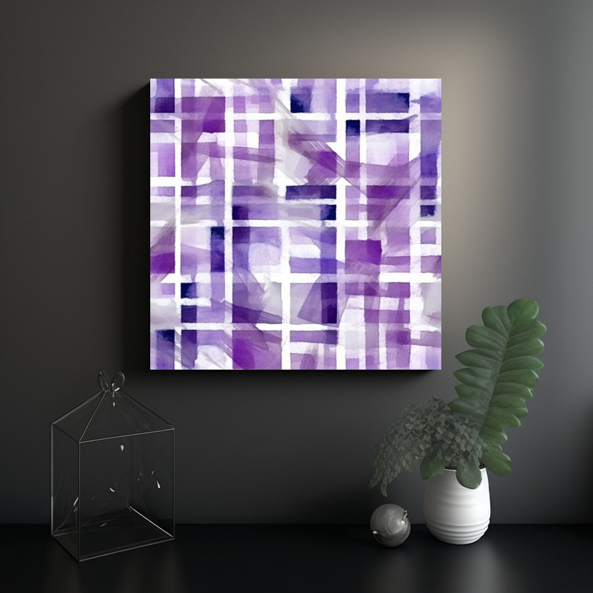 Cuadro En Bastidor Patrón A Cuadros Blanco Y Morado Estilo Años 70.