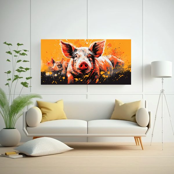 Transforma tus espacios con este vibrante cuadro en bastidor con cerdos en tonos vibrantes y naranjas Añade un toque de color y estilo con esta obra de arte moderna Entrega rápida y gratuita en Santiago, envíos express a regiones