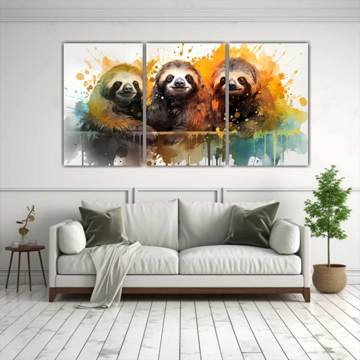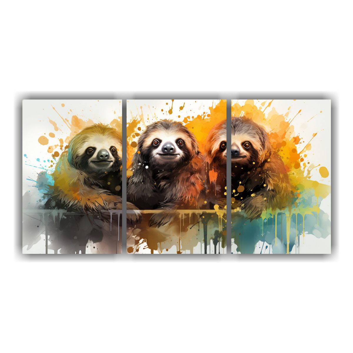 Cuadro En Bastidor Tela Canvas Dimensiones A Perezosos En Tonos Susurro Y Castaño Neo Pop Art