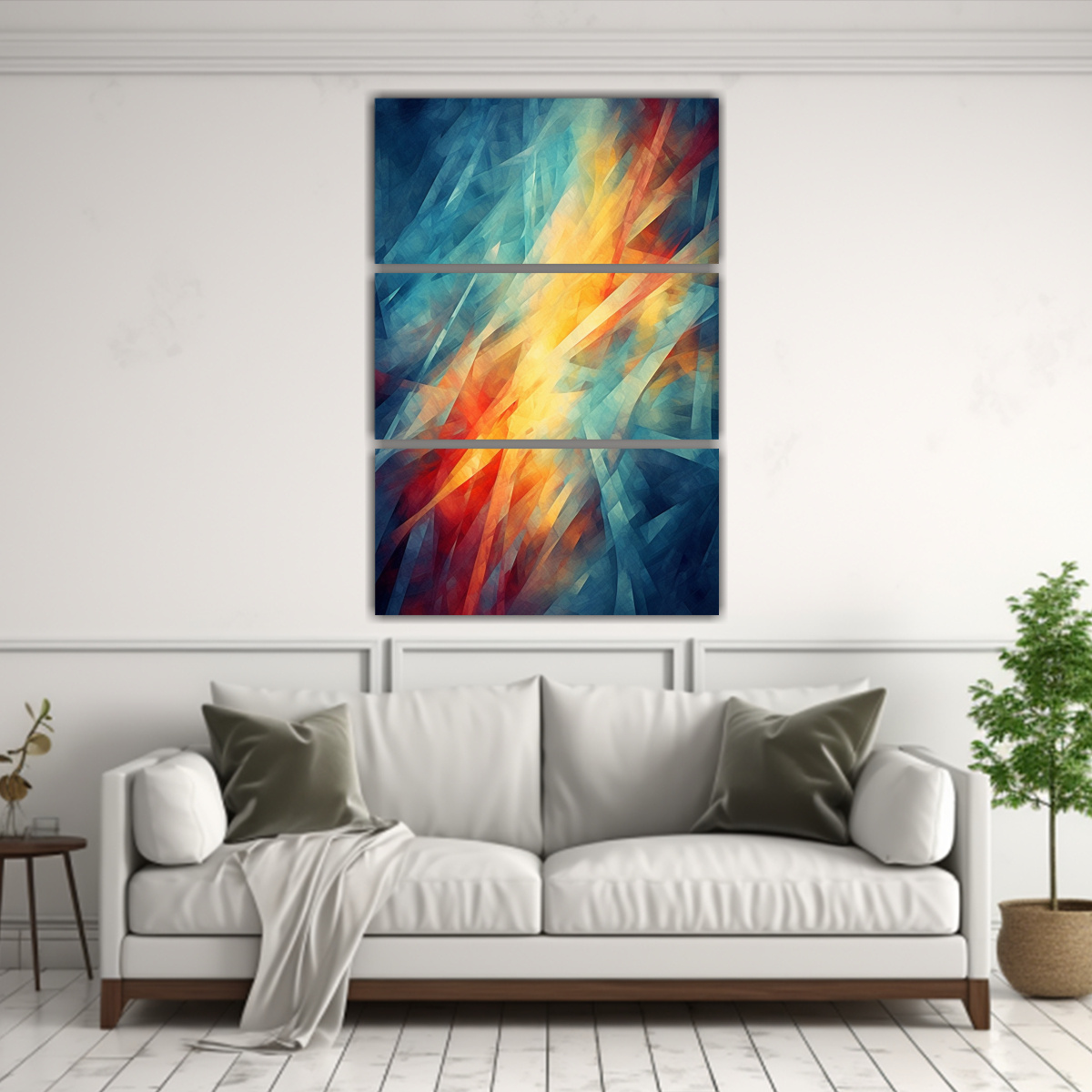 Este cuadro en Bastidor: Tres Telas en Armonía es ideal para decorar tu sala de estar o dormitorio Combínalo con tonos neutros como blanco o gris para resaltar su vibrante paleta de colores También puedes colocarlo en un pasillo o recibidor para darle vida a esos espacios de transición No pierdas la oportunidad de tener un diseño exclusivo en tus paredes, con la mejor calidad y precios más económicos del mercado