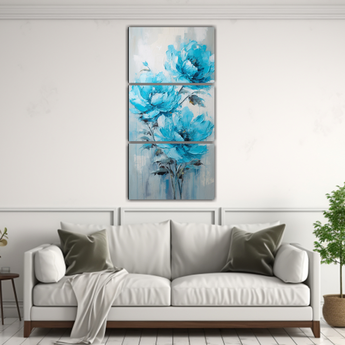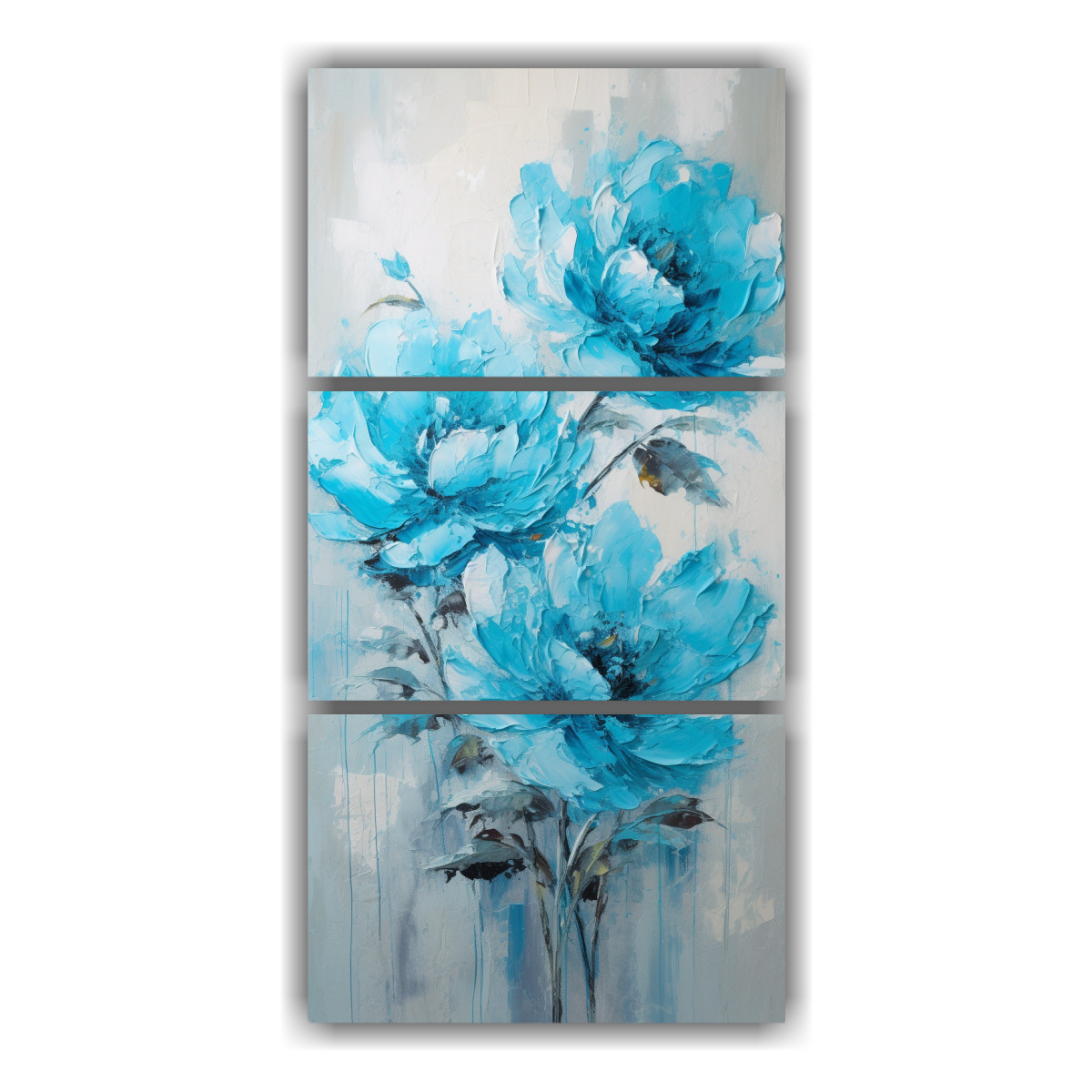 Renueva tus espacios con este hermoso Set 3 Telas en Bastidor Vertical con motivo de peonías en tonos turquesa Envío rápido y gratuito en Santiago Envíos express a regiones Aprovecha la mejor calidad y diseño exclusivo ¡No te lo pierdas!