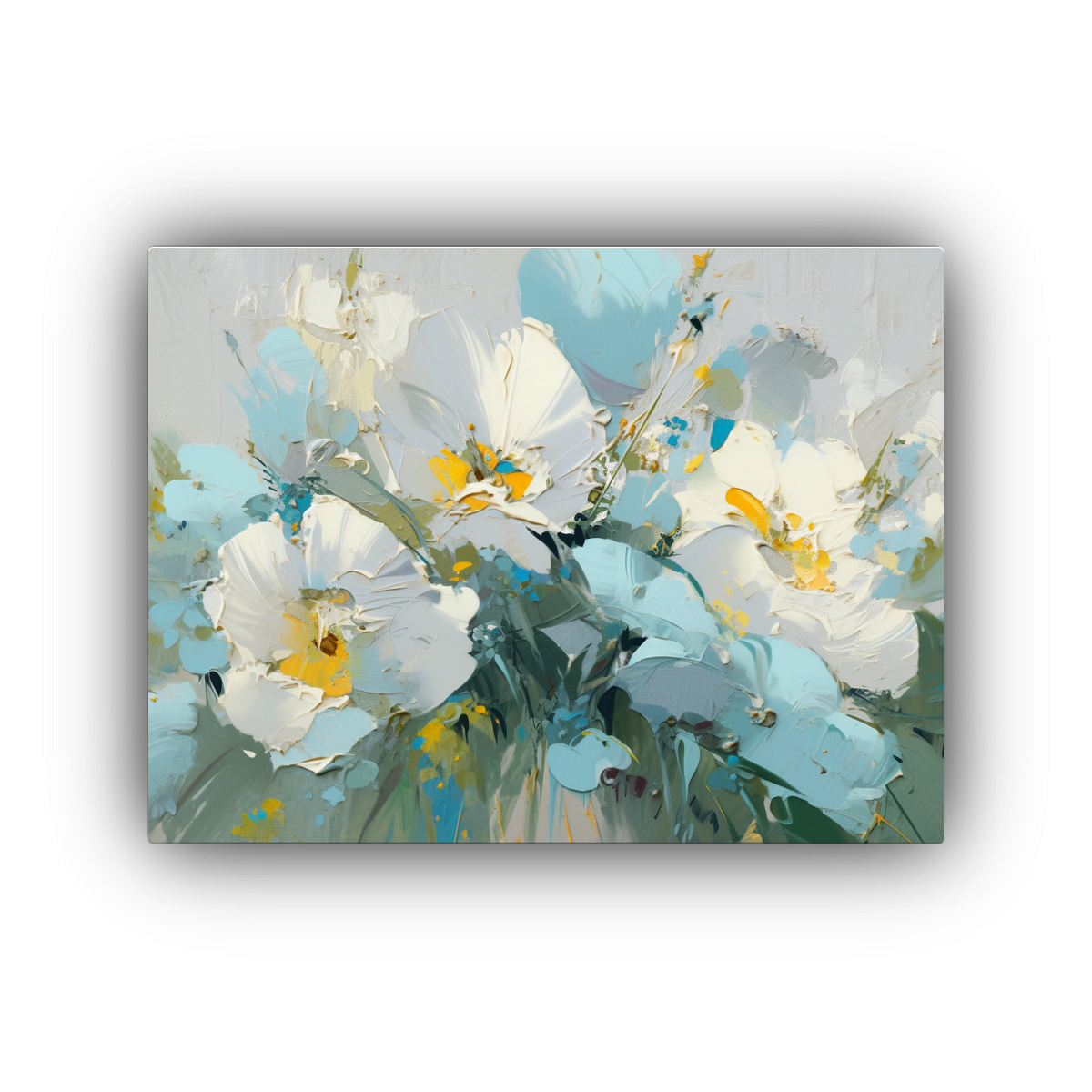 Cuadro En Lienzo Con Flores Turquesa En Estilo Creativo.