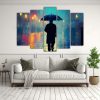 Cuadro En Tela Multicolor: Silueta Anciano Con Paraguas Pasea