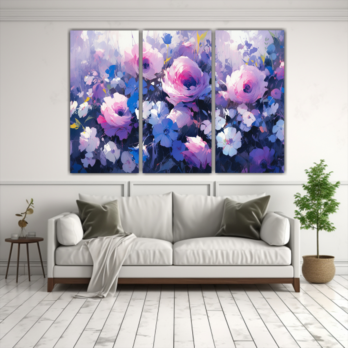 Para realzar la belleza y misterio de este cuadro enigmático de flores púrpuras y magentas, te recomendamos colocarlo en una pared de tonos neutros como blanco o gris claro, para que resalten los colores vibrantes Combínalo con muebles modernos en tonos cálidos para crear un ambiente acogedor y sofisticado
