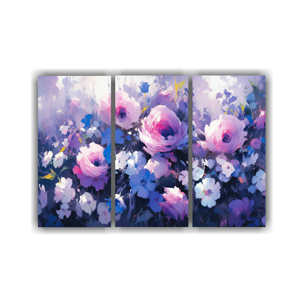 Cuadro Enigmático De Flores Púrpuras Y Magentas En Lienzo