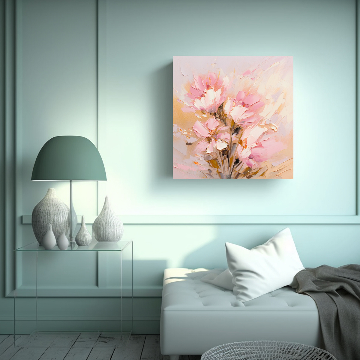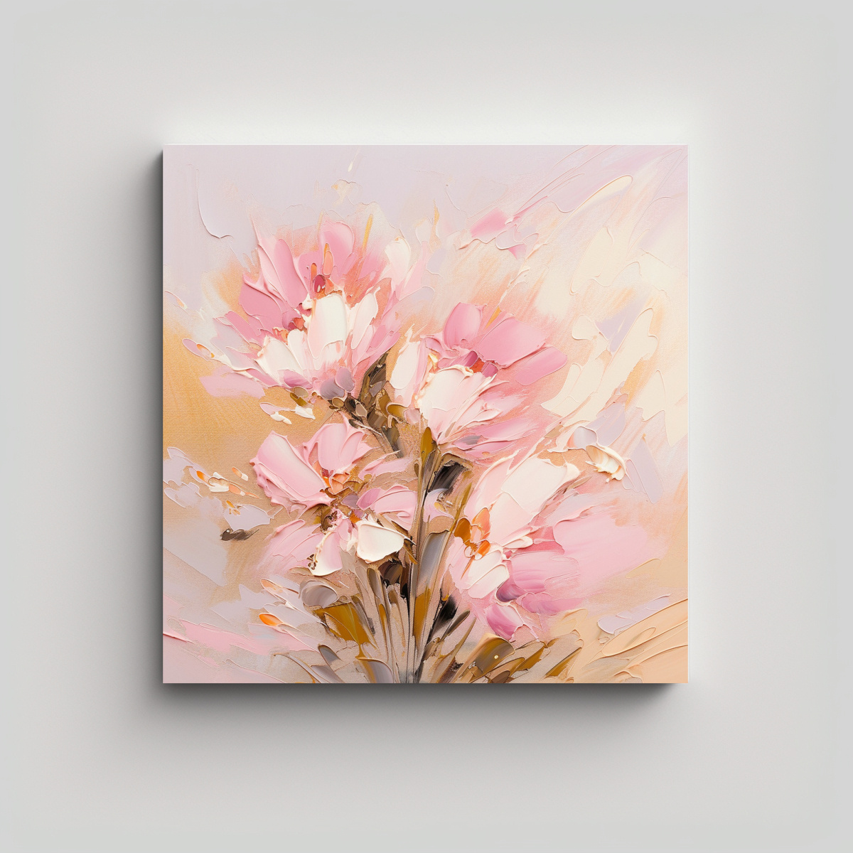 Este cuadro espectacular A Gold AND Pink Colors flowers painting on canvas es perfecto para decorar tu sala de estar Colócalo sobre un sofá blanco para resaltar los tonos dorados y rosados Combínalo con cojines en tonos beige y gris para crear un ambiente sofisticado y elegante