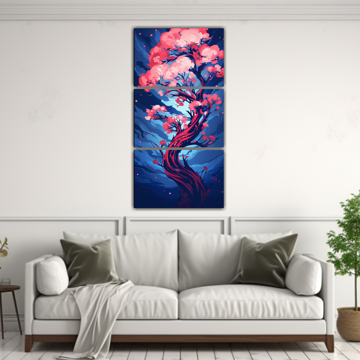 Cuadro Esquema Árbol Enebro En Rojo Y Azul Atmosfera Neonoir