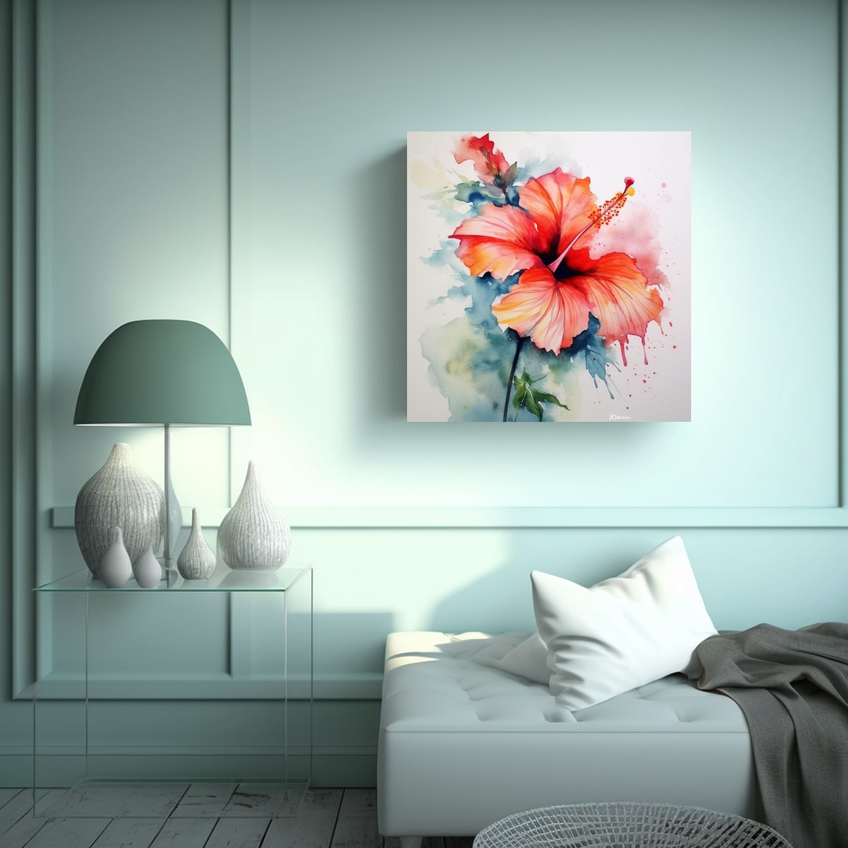 Decora tu hogar con el encanto natural del cuadro de hibiscus en acuarela Diseño exclusivo y calidad premium en tela de alta calidad con bastidor de madera Disfruta de nuestras entregas rápidas y gratuitas en Santiago y envíos express a regiones Combínalo en tu sala de estar, dormitorio o estudio para crear un ambiente elegante y armonioso