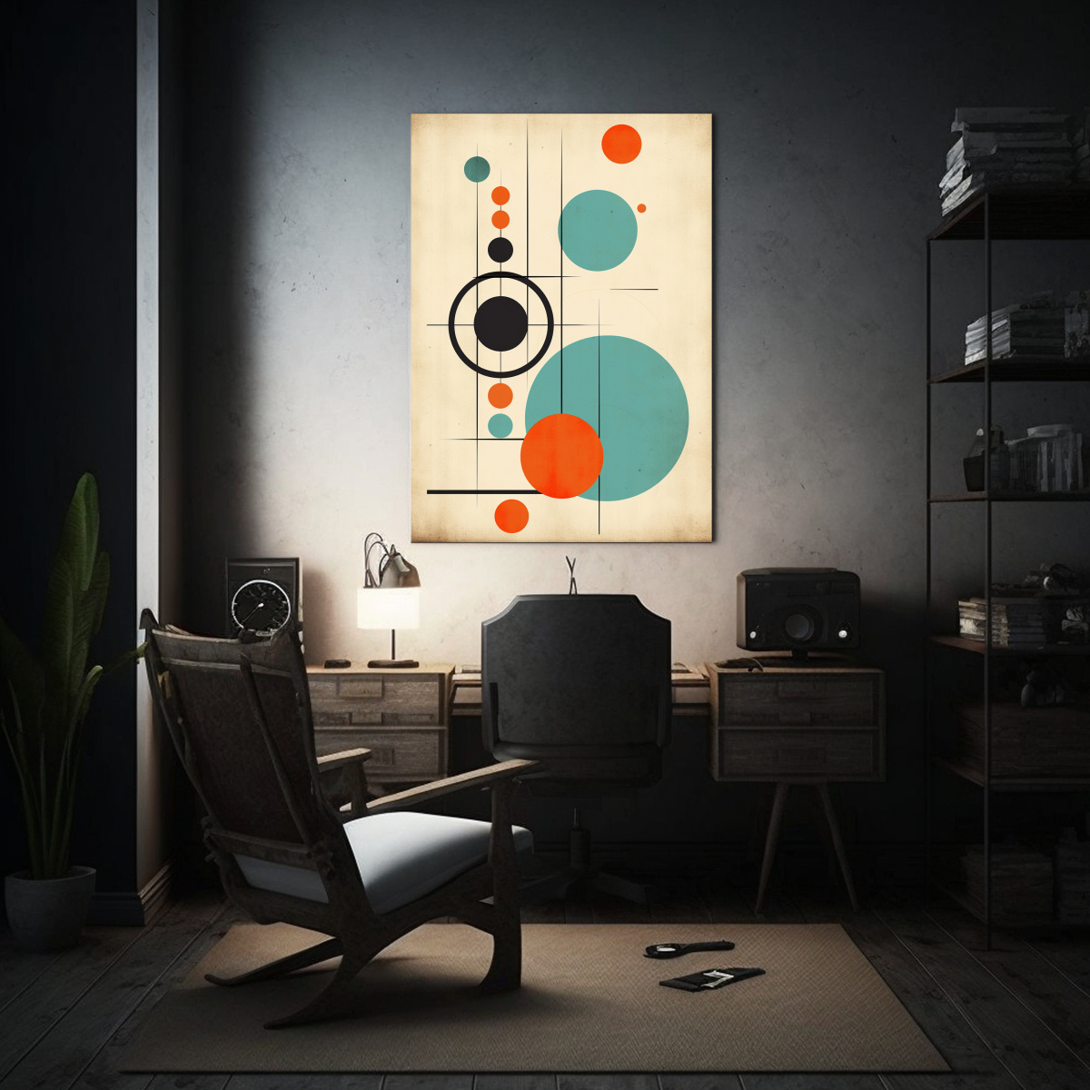 Cuadro Estético Vanguardia Medio Siglo Moderno Circulos Naranja Turquesa