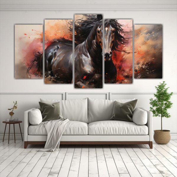 Cuadro Estilo Acuarela Multicolor De Un Caballo Frisón.