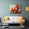 Este cuadro con flores verdes y rojas encajaría a la perfección en un salón o comedor de estilo moderno Colócalo sobre un mueble blanco para resaltar sus colores y combínalo con cojines en tonos plateados y azules para crear un ambiente armonioso y elegante