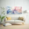 Este cuadro sería ideal para decorar una sala de estar moderna Puedes colocarlo en una pared blanca para que los tonos suaves y etéreos resalten Combínalo con muebles en tonos neutros como beige o gris claro para crear un ambiente relajante y elegante Agrega cojines en tonos turquesa o lila para darle un toque de color adicional ¡Impresiona a tus invitados con este cuadro exclusivo de DecoCuadros!
