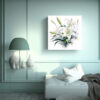 Cuadro Estilo Pintura China De Tinta: Composición Lirio Verde Y Blanco
