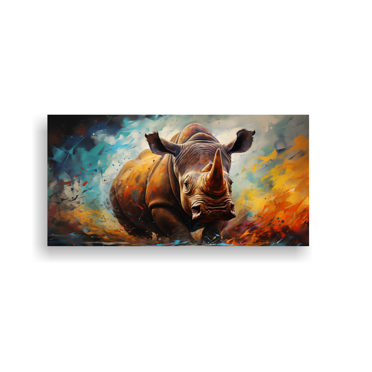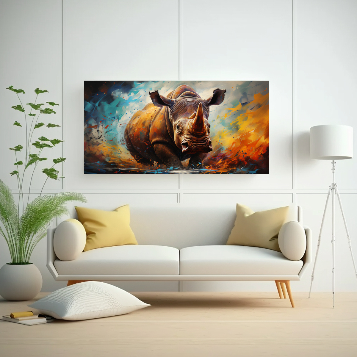 Este Cuadro Estrellados Rinoceronte Colorido sería ideal para colocar sobre un sofá gris claro o una repisa de madera en una sala de estar de estilo moderno Combínalo con cojines en tonos Coral y Menta para lograr un ambiente armonioso y lleno de vida