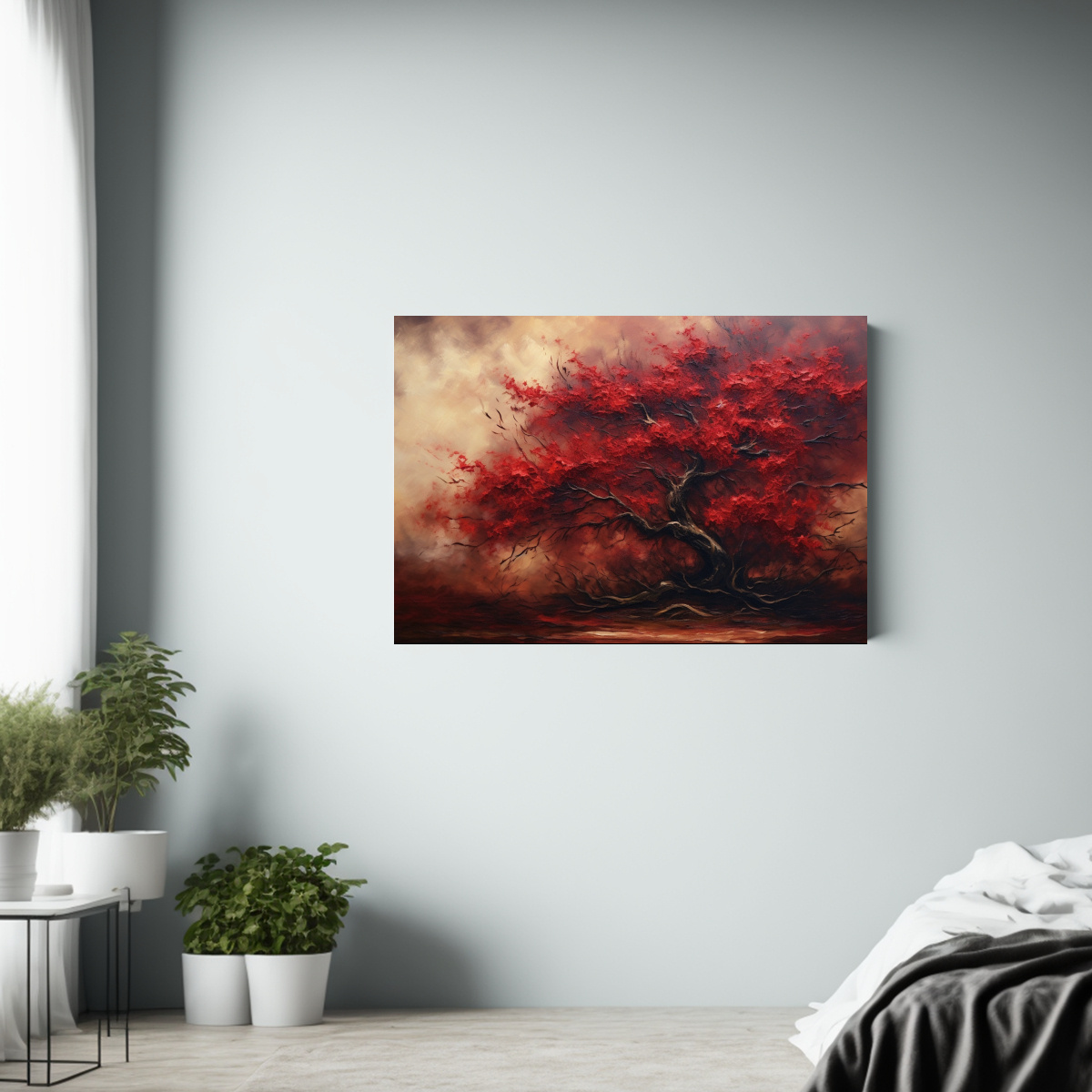 Este cuadro exclusivo de árbol en otoño estilo abstracto sería perfecto para colocar en la sala de estar, sobre un sofá de color neutro, para resaltar su belleza y añadir un toque de elegancia y modernidad al ambiente ¡Combínalo con cojines en tonos cálidos para una decoración acogedora!