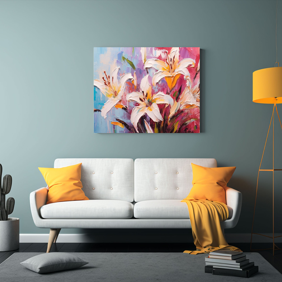 Cuadro Exclusivo De Pintura Con Espátula De Lirios Minimalistas