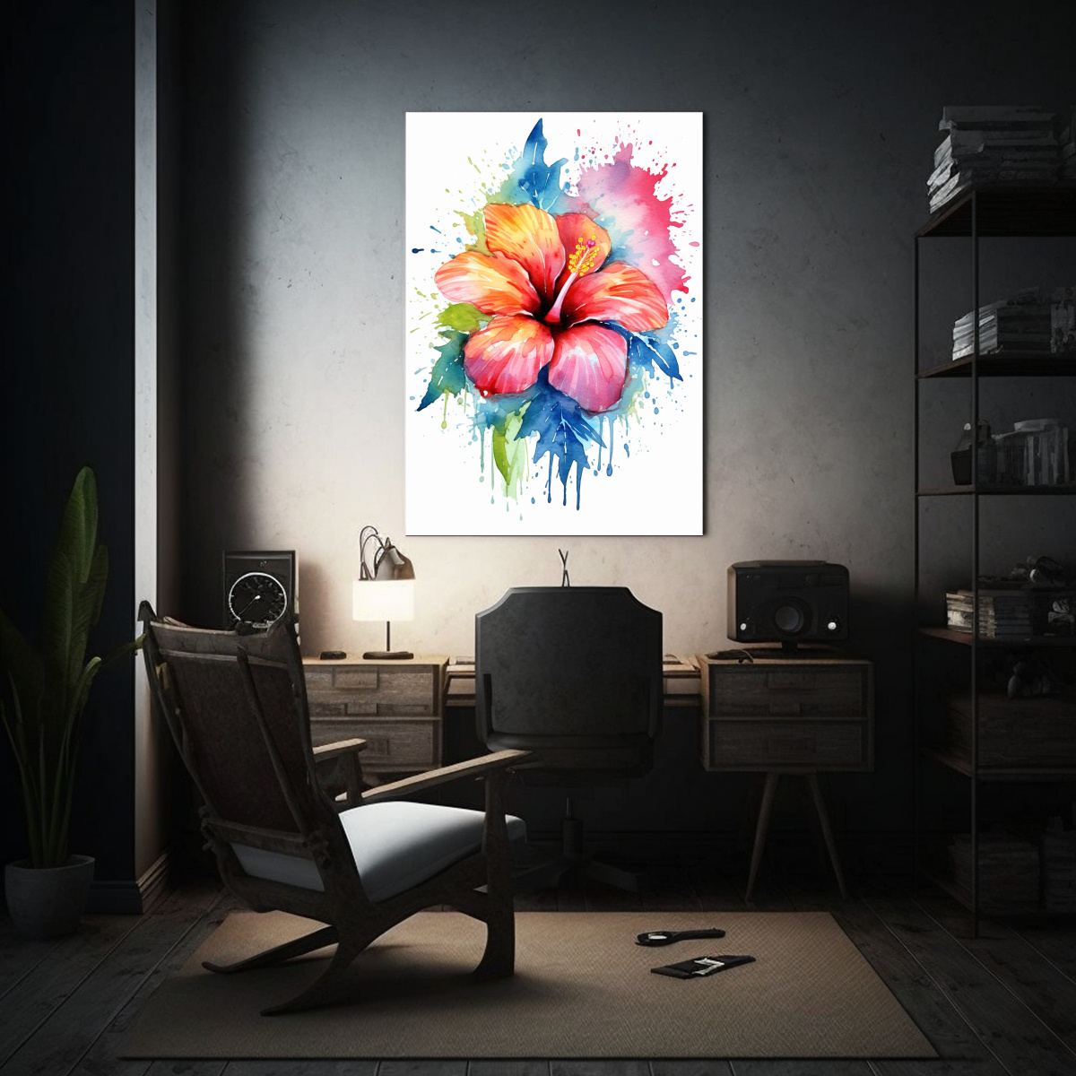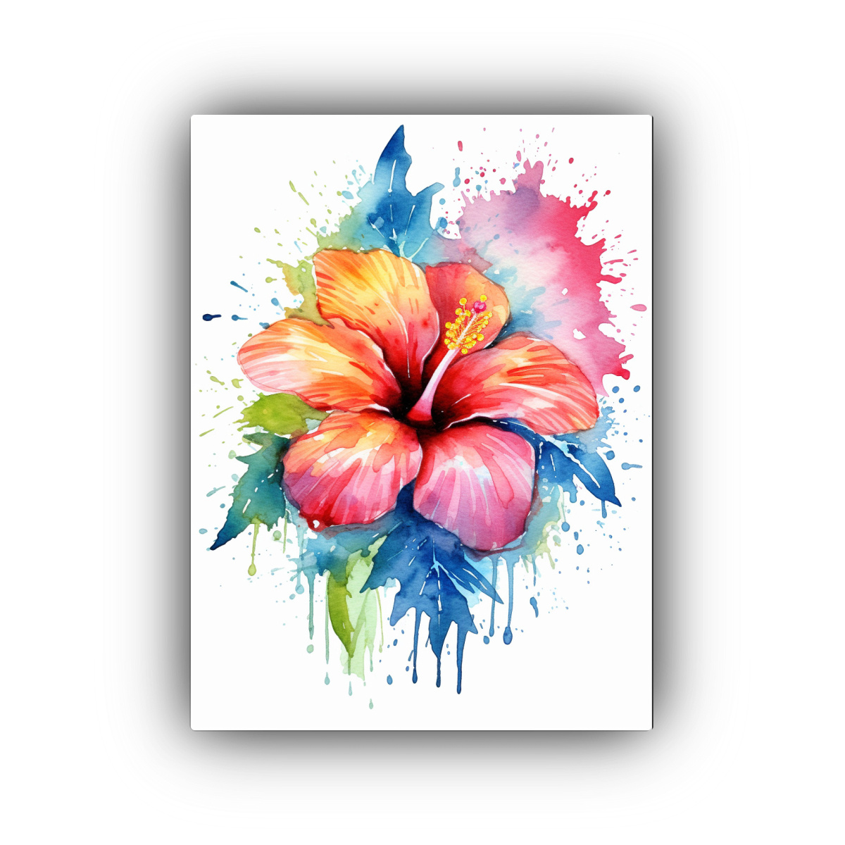 Cuadro Expresión Calma tropical flower in watercolor art colourful splashes whi Impreso en tela de alta calidad con bastidores de madera, nuestros cuadros cuentan con diseños exclusivos y la mejor relación calidad-precio del mercado Además, ofrecemos envío gratis en Santiago y envíos express a regiones Crea un aspecto 3D más realzado y moderno con nuestro cuadro estilo lienzo de galería ¡Decora tu espacio con estilo y personalidad!