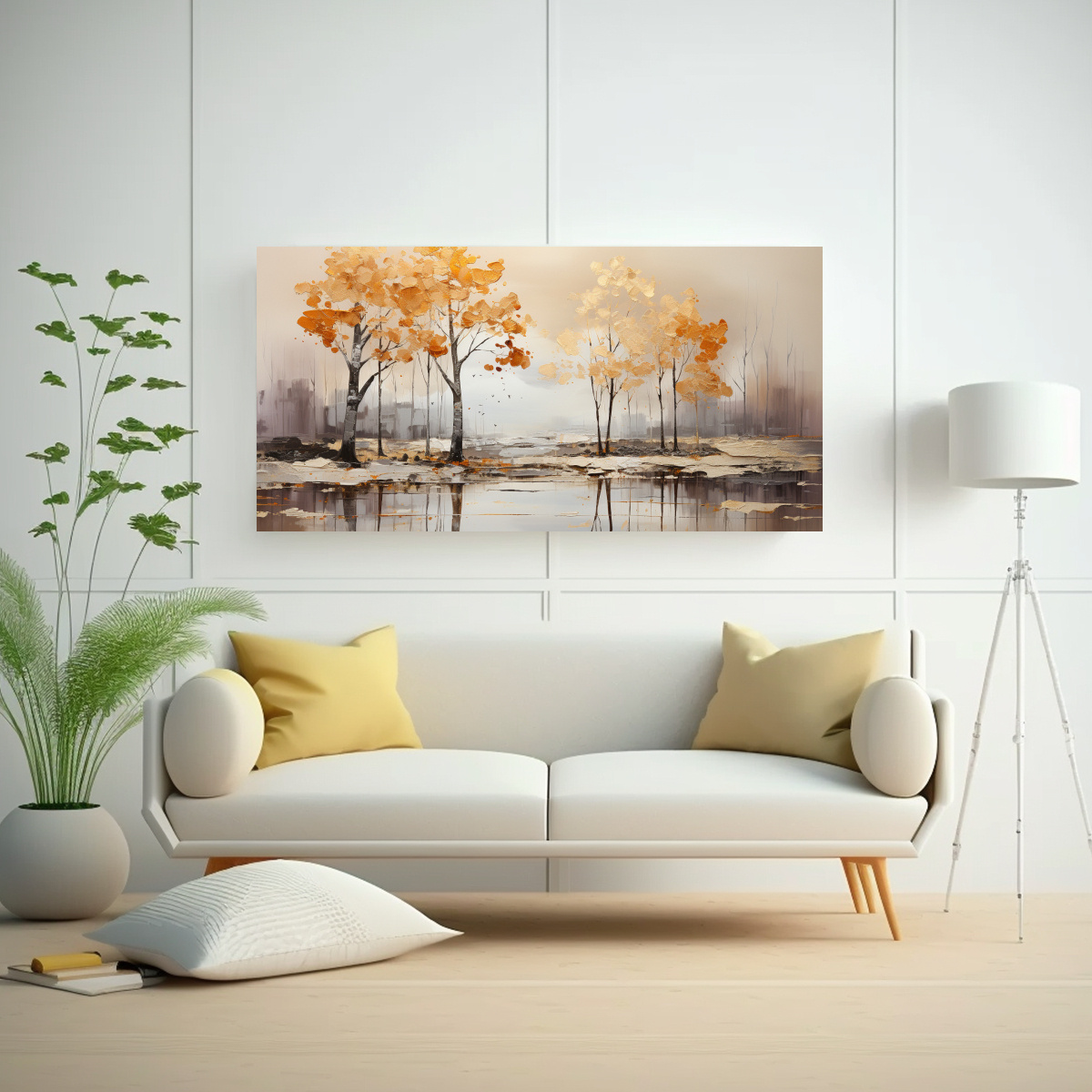 Coloca el Cuadro Expresión Duradero de árboles en plata y blanco en tu sala de estar para crear un ambiente sofisticado Combínalo con muebles en tonos neutros como gris o beige y agrega detalles decorativos en dorado para resaltar la elegancia del cuadro También puedes colocarlo en el dormitorio, creando un ambiente relajante y sereno ¡Atrévete a darle vida a tus espacios con este cuadro de diseño exclusivo!
