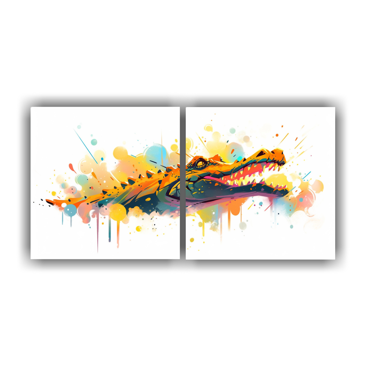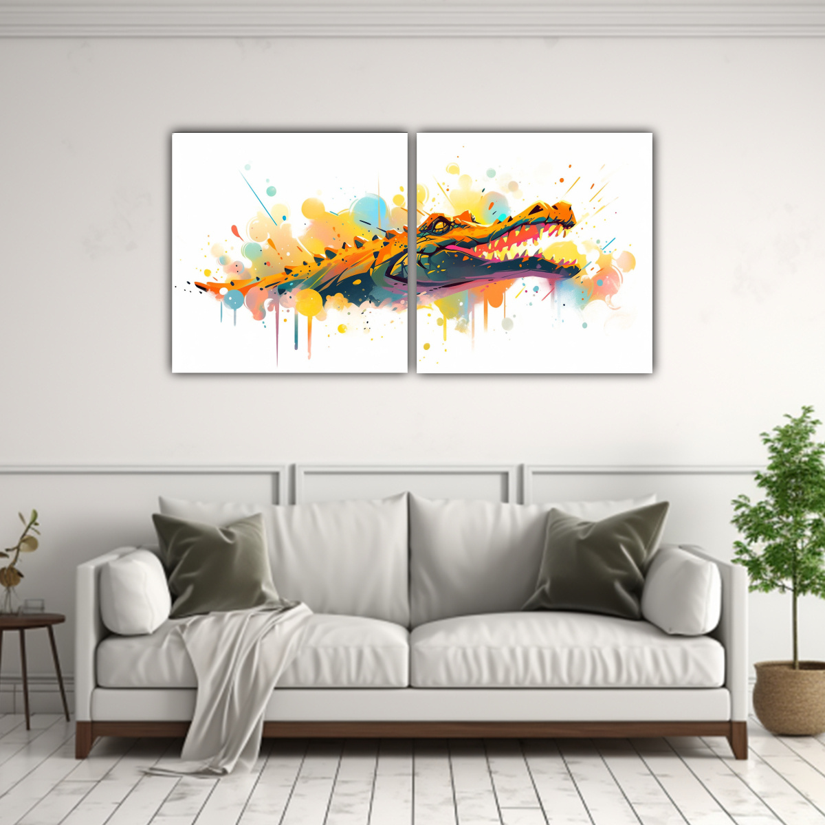 Cuadro Expresiva De Un Cocodrilo En Colores Dorados Arte Neo Pop