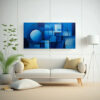 Este cuadro sería perfecto para decorar una sala de estar moderna Puedes colocarlo sobre un sofá negro o en una pared blanca para crear un contraste llamativo Combínalo con cojines en tonos azules y plateados para completar la decoración