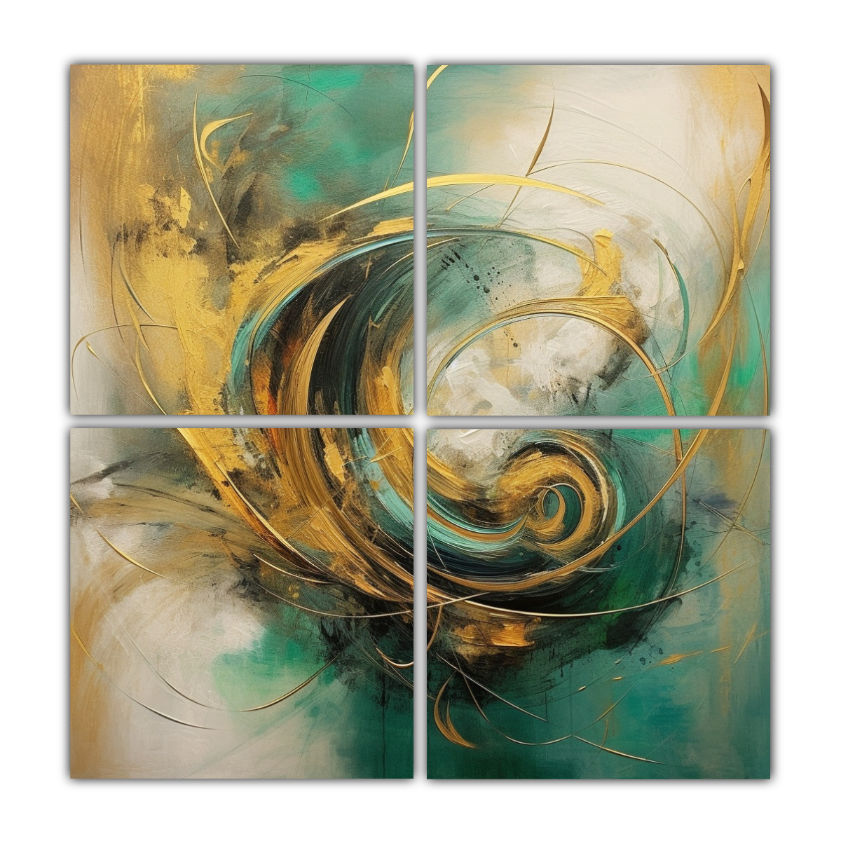 Cuadro Fantasía Elegante Con Detalles En Oro Y Verde