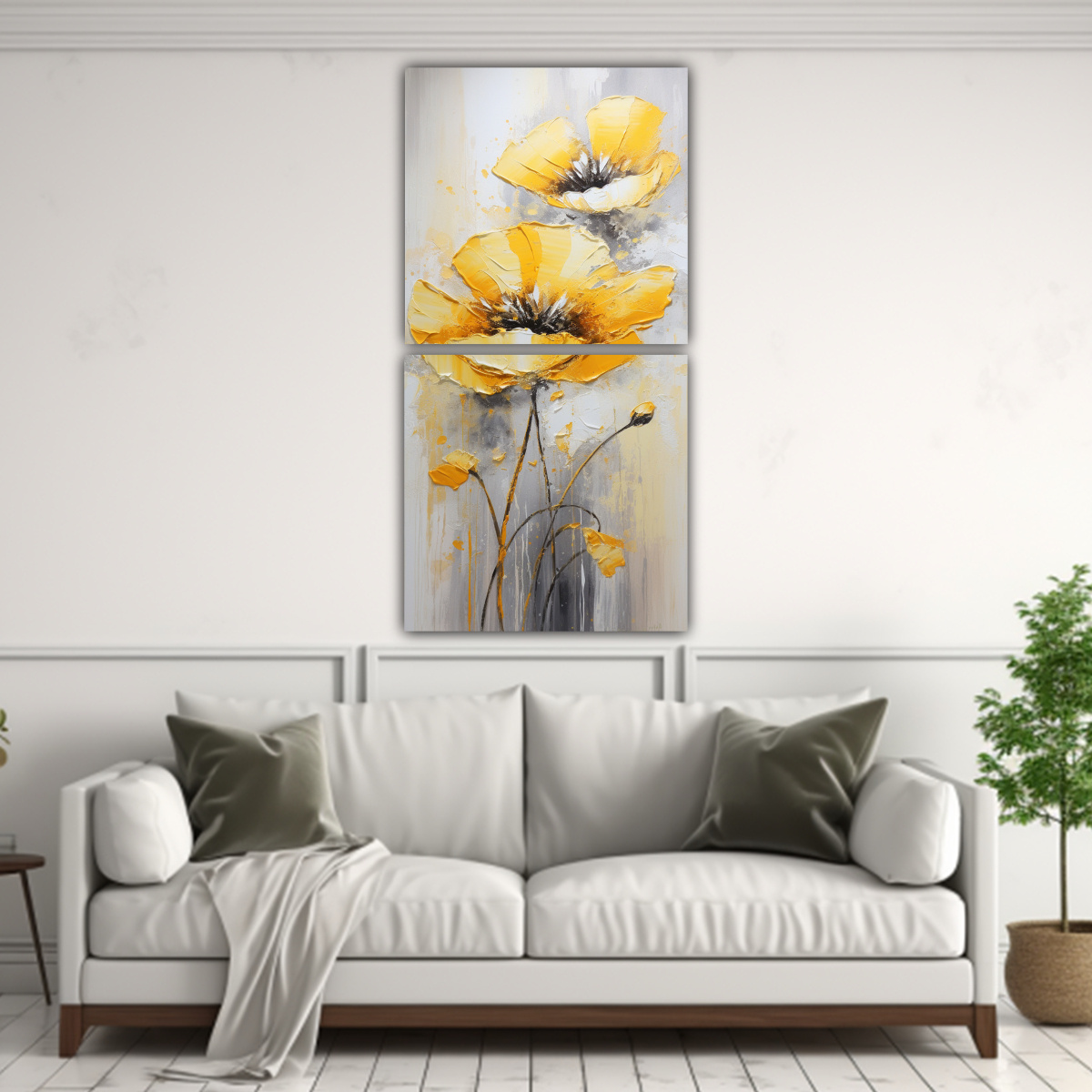 Coloca el Cuadro Flor Amarillo CALIDEZ en Lienzo Estilo Pintura Decorativa en tu sala de estar para crear un ambiente acogedor y elegante Combina este cuadro con muebles en tonos neutros como beige y gris, y agrega toques de color con cojines en tonos amarillo claro y coral El cuadro también se verá espectacular en un dormitorio, sobre la cama, creando un punto focal impresionante ¡Atrévete a decorar con estilo y calidez!
