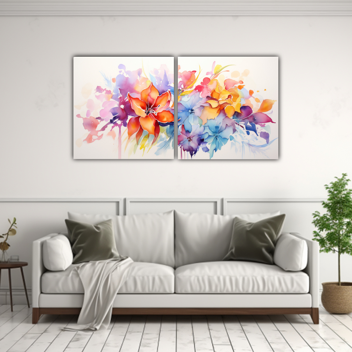 Este cuadro floral abstracto en acuarela sobre lienzo sería perfecto para decorar tu sala de estar Combínalo con muebles en tonos neutros como beige, gris o plateado para crear un ambiente elegante y sofisticado Colócalo sobre un mueble auxiliar o en una pared vacía para darle vida a tu espacio ¡Atrévete a añadir un toque de color y estilo con este hermoso cuadro!