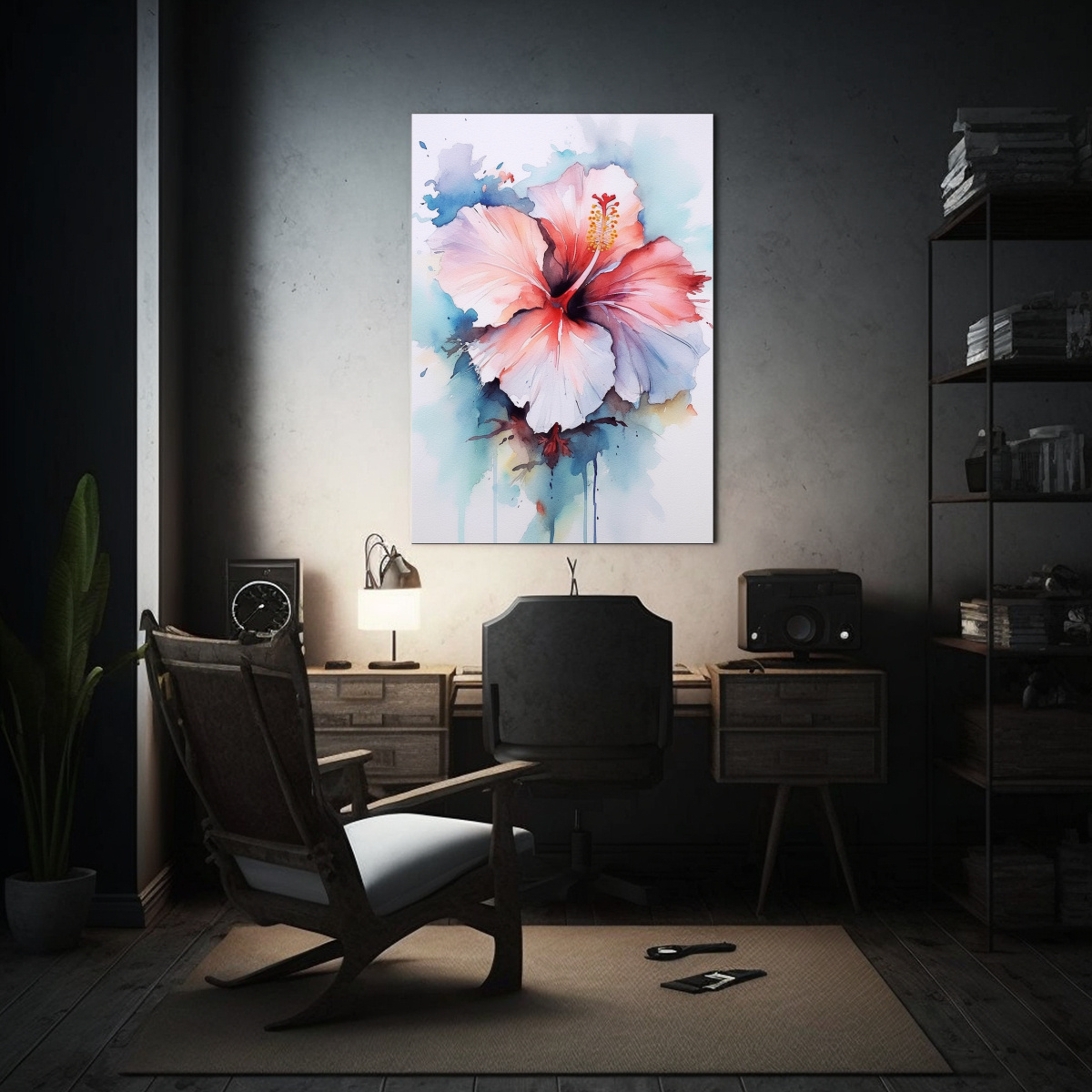 Cuadro Floral Acuarela De Hibiscos Obra Maestra Fotográfica De Tinta Acuarelada