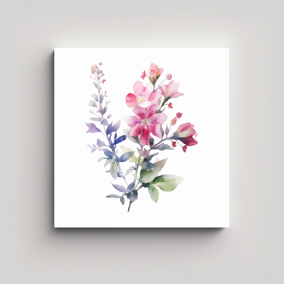 Cuadro Floral Acuarela Simetría Alta Calidad Fondo Blanco