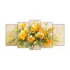 Cuadro Floral Amarillo Y Blanco Sobre Lienzo De Tela, Juego De 5.